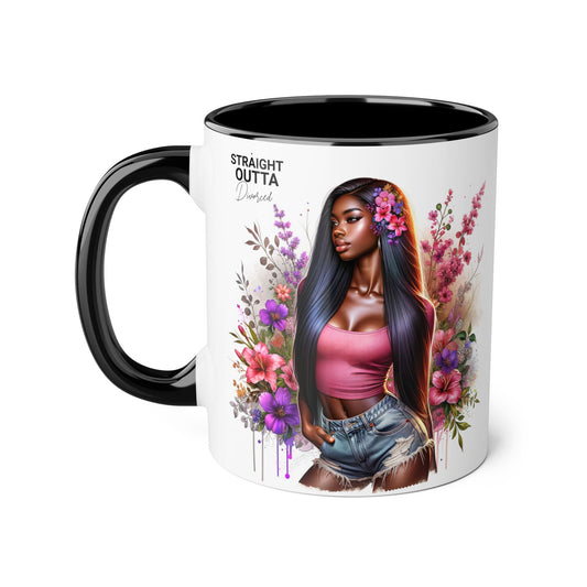 Straight Outta Divorced Humoristic Floral Portrait Accent Mug - Perfect for Coffee Lovers, Gifts for Her, Home Decor, Mother's Day, Inspirational Drinkware