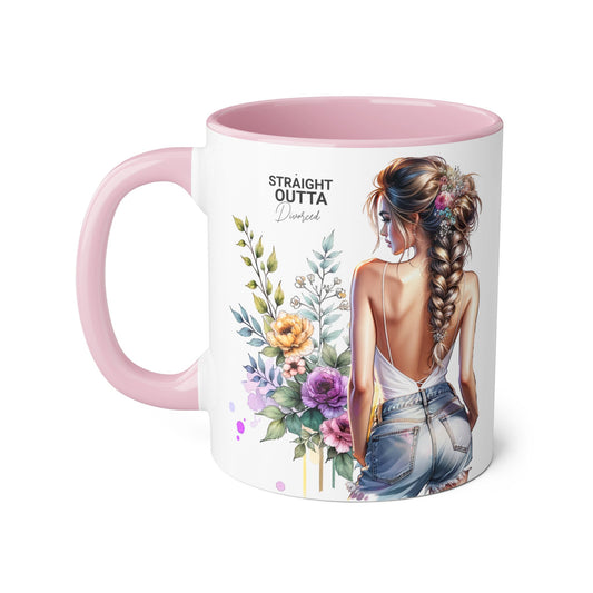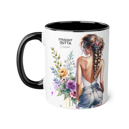 Straight Outta Divorced Humoristic Floral Art Accent Mug - Perfect for Coffee Lovers, Gift for Her, Home Decor, Inspirational, Mother's Day