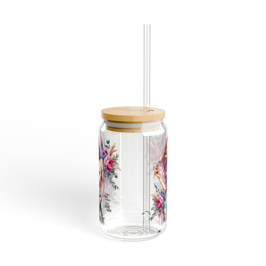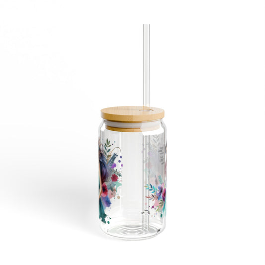 I Don't Make Mistakes, I Date Them Floral Art Sipper Glass, Stylish Water Bottle, Eco-Friendly Glass Mug, Perfect Gift for Garden Lovers, Home Decor, Drinkware