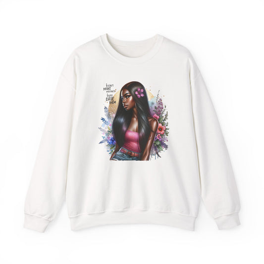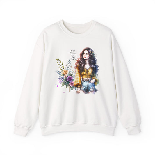 I Don't Make Mistakes, I Just Date Them Boho Chic Crewneck Sweatshirt, Cozy Gift for Her, Fashionable Layering Piece, Art-Inspired Apparel, Perfect for Special Occasions