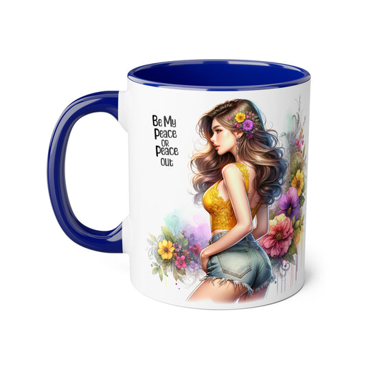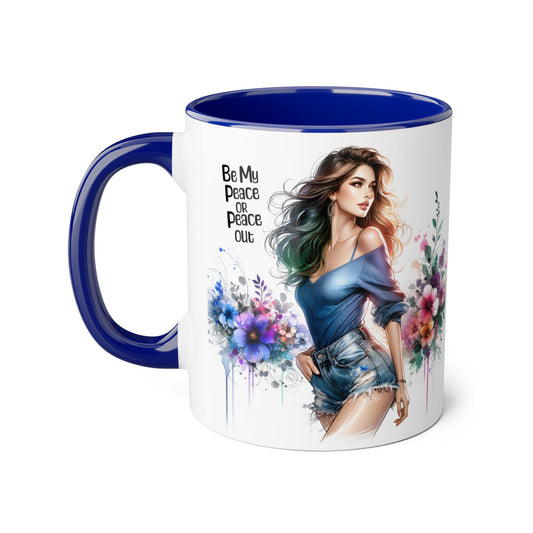 Be My Peace or Peace Out Colorful Woman's Peace Mug - Floral Design, Gift for Friends, Inspirational Coffee Cup, Unique Kitchen Decor, Birthday and Friendship Gift