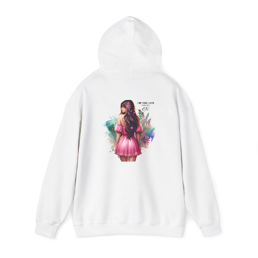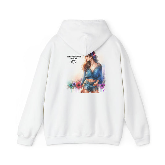 I'm Too Cute For My Ex Vibrant Art Hooded Sweatshirt - Cozy Unisex Sweatshirt, Floral Design, Gift for Her, Fashionable Layer, Casual Wear, Stylish Comfort