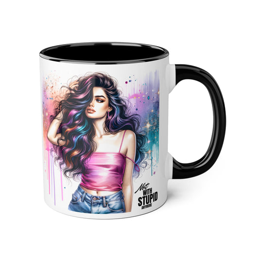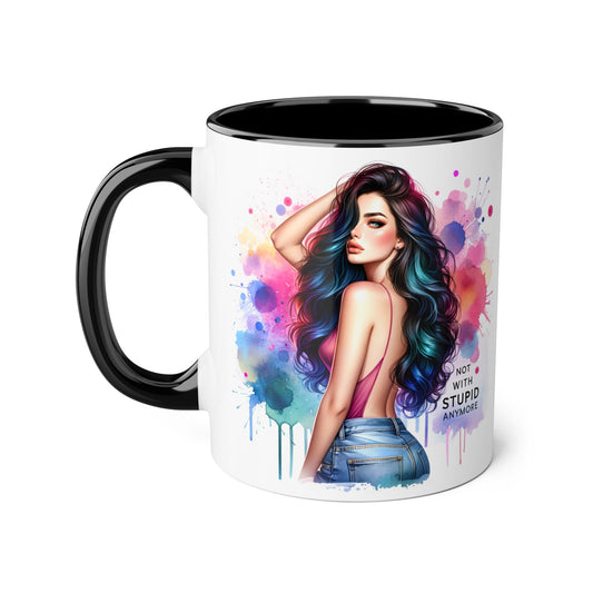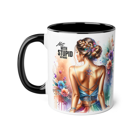 Not With Stupid Anymore Humoristic Vibrant Accent Mug - Perfect Gift for Creative Souls, Quirky Coffee Lover, Art Enthusiast, Birthday, or Just Because