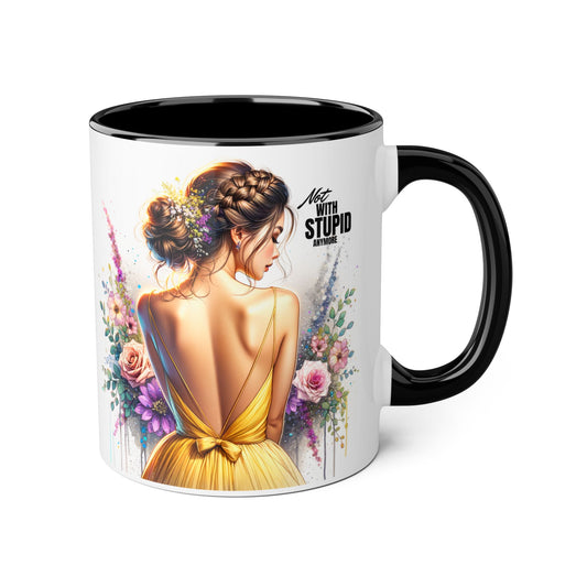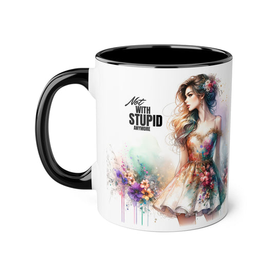 Not With Stupid Anymore Humoristic Stylish Accent Mug - Not With Stupid, Gift for Coffee Lovers, Unique Coffee Mug, Floral Design, Funny Mug for Friends, Sassy Gift