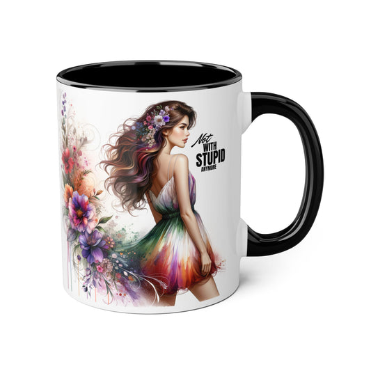 Not With Stupid Anymore Humoristic Artistic Accent Mug, Colorful Floral Gift, Home Decor, Coffee Lover, Unique Artwork, Stylistic Drinkware, Inspirational Quotes