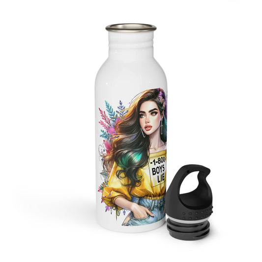 Stylish Stainless Steel Water Bottle with Floral Design, 1-800-BOYS-LIE, Trendy Hydration, Fitness Gift, Summer Accessories