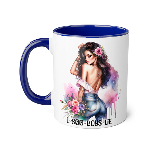 Stylish Accent Mugs, 11oz - Fun Gift for Friends, 1-800-BOYS-LIE, Coffee Lover Present, Unique Mug for Selfies
