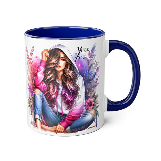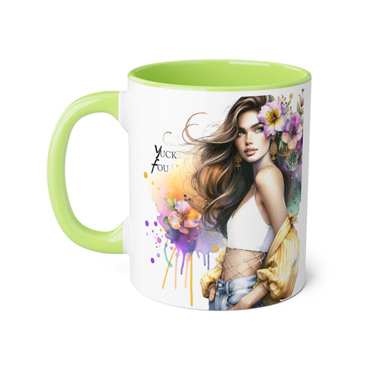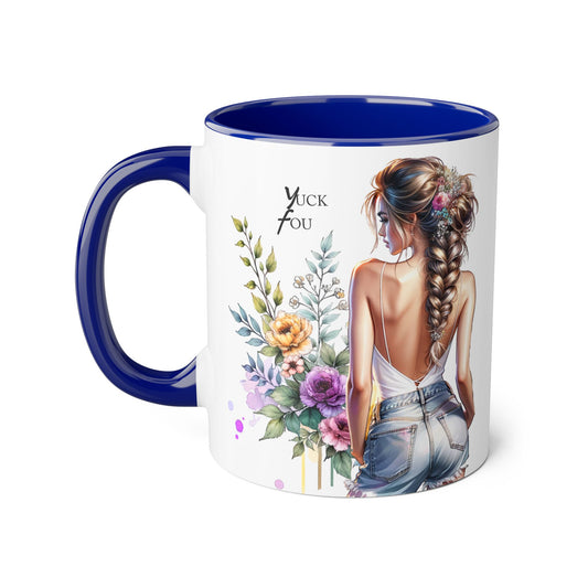 Yuck Fou Feminine Floral Accent Mug, 11oz Coffee Cup, Gift for Her, Inspirational Coffee Mug, Stylish Kitchen Decor, Birthday Gift