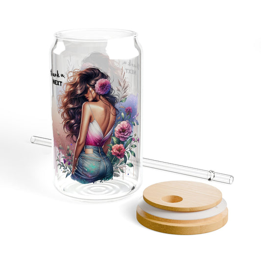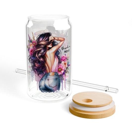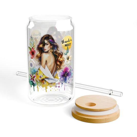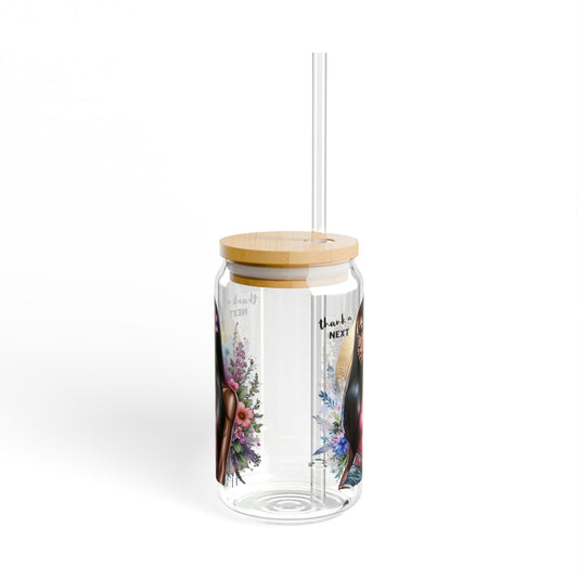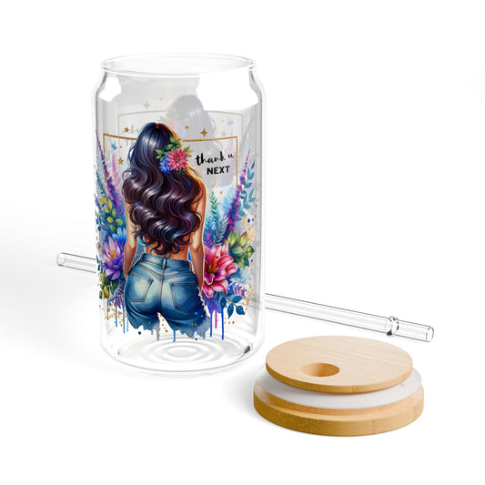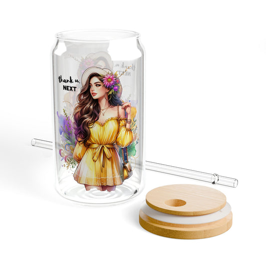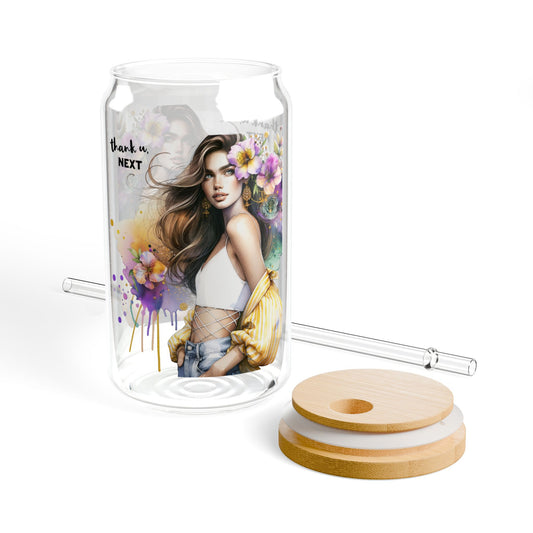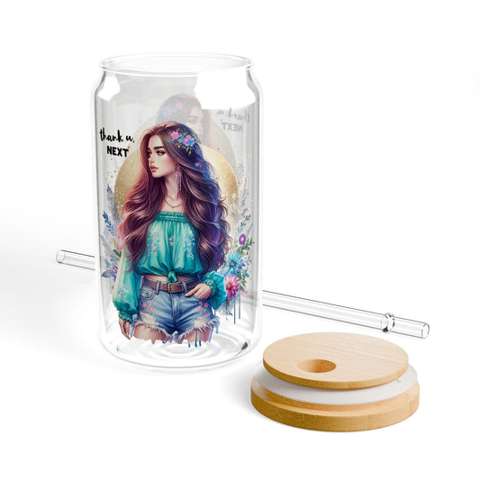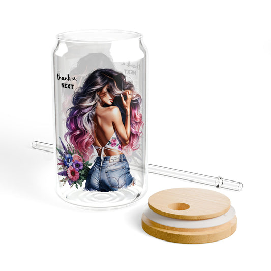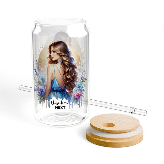 Thank U, Next Artistic 16oz Sipper Glass with Beautiful Woman Design, Perfect for Water, Smoothies, and Gifts