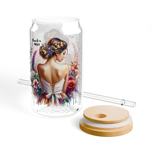 Thank U, Next Elegant Floral Sipper Glass - 16oz, Water Bottle, Gift for Her, Eco-friendly Drinkware, Wedding Favor, Party Decor