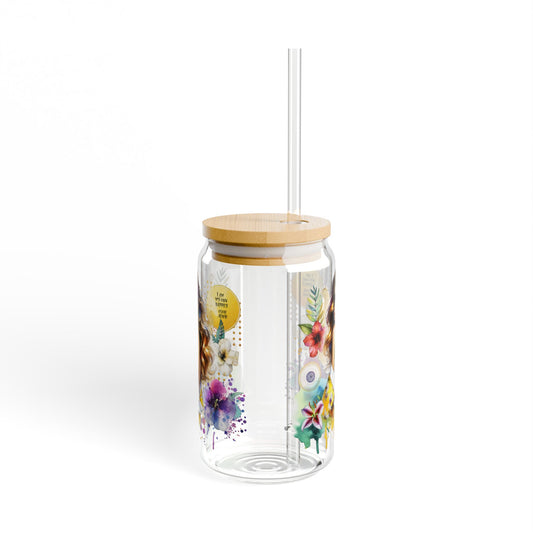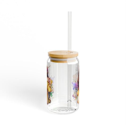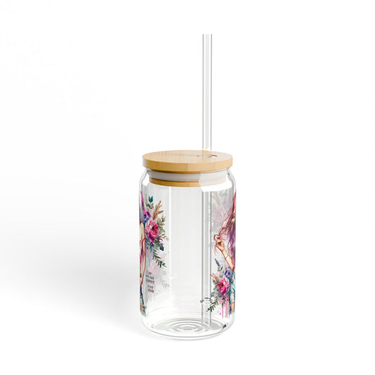 I Am My Own Happily Ever After Floral Sipper Glass, Perfect for Summer Sips, Gifts for Her, Eco-Friendly Drinkware, Boho Home Decor, Unique Water Bottle