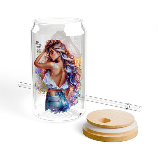 I Am My Own Happily Ever After Inspirational Sipper Glass with Straw - 16oz - Perfect for Smoothies and Refreshing Beverages