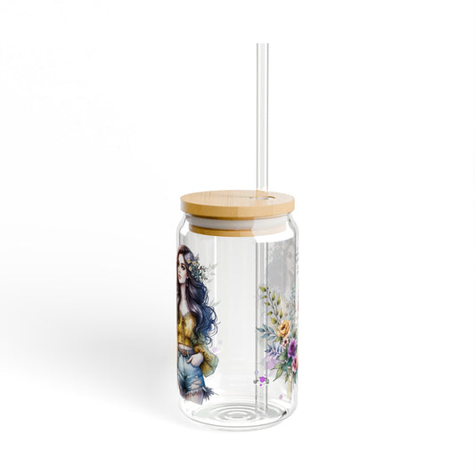 I Am My Own Happily Ever After Floral Art Sipper Glass - 16oz with Straw - Vibrant & Eco-Friendly Drinkware