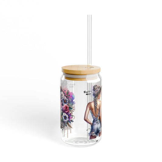 Thank U, Next Floral Sipper Glass, 16oz - Stylish Reusable Drink Container, Eco-Friendly Artisan Design for Parties, Gifts, Home, or Travel