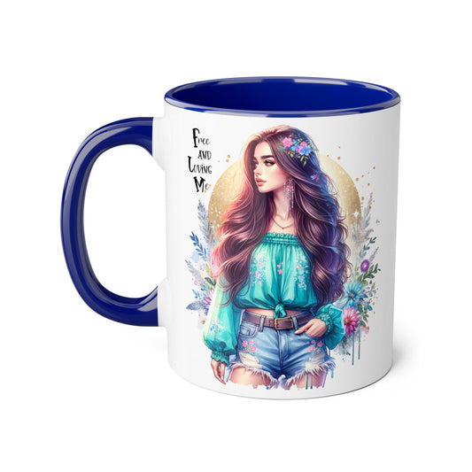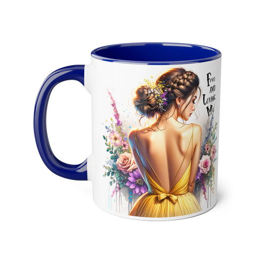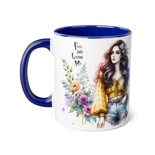 Free and Loving Me Vibrant Accent Mug, Colorful Coffee Cup for Self-Care