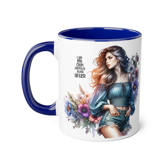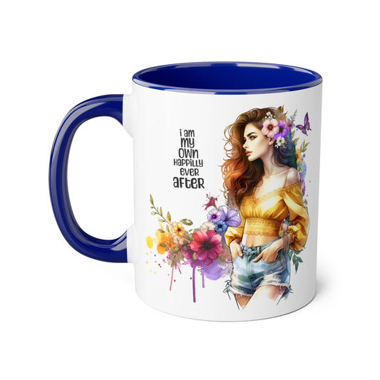 I Am My Own Happily Ever After Whimsical Floral Accent Mug - Perfect for Tea Lovers, Gift for Her, Custom Drinkware, Creative Home Decor, Inspirational Coffee Cup