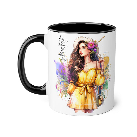 I Was Married Before But I'm Better Now Humoristic Vibrant Artistic Accent Mug, Inspirational Coffee Cup, Unique Gift for Her, Home Decor, Cozy Mug for Moments