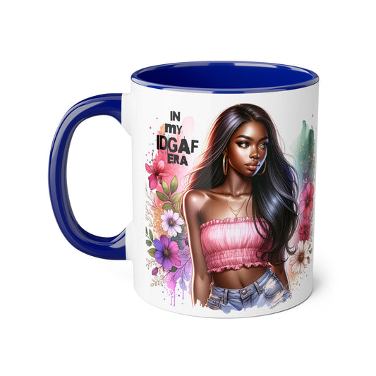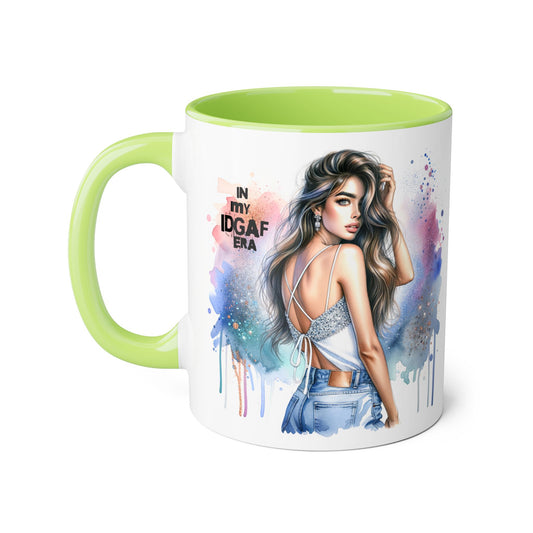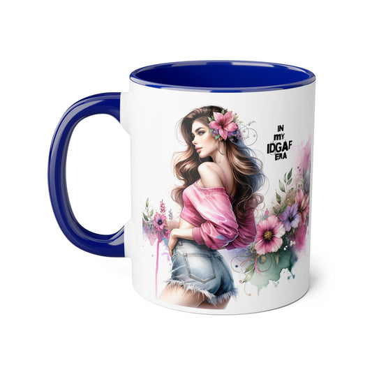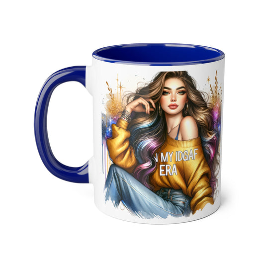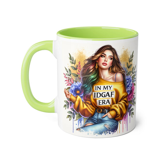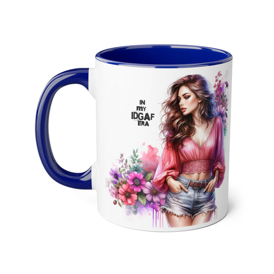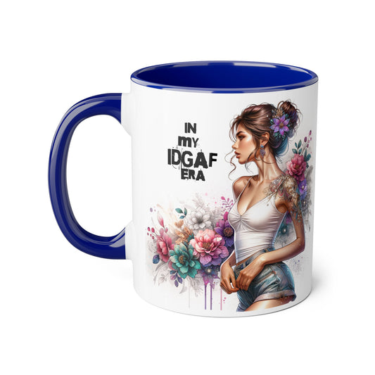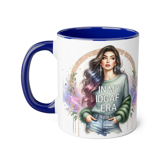 Stylish IDGAF Era Accent Mug, Empowering Gift for Her, Cute Coffee Cup, Trendy Drinkware, Funny Quote Mug, Perfect for Gifting