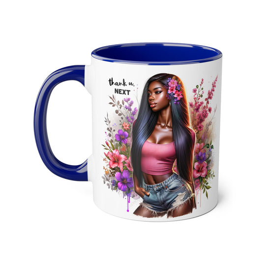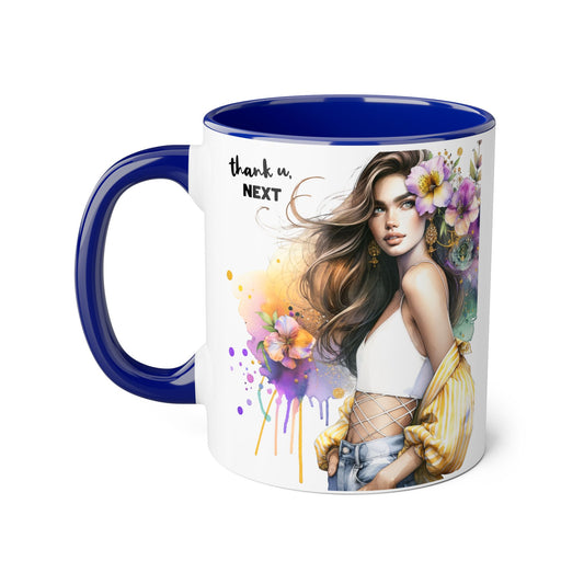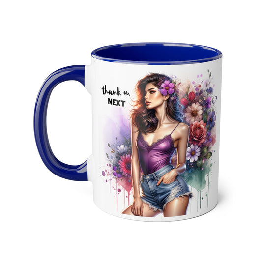 Thank U, Next Floral Artwork Accent Mug, Thank U Next Coffee Mug, Gift for Her, Floral Style Drinkware, Unique Home Decor