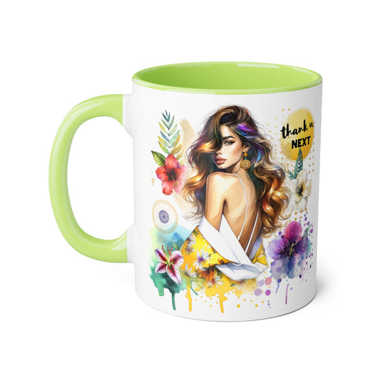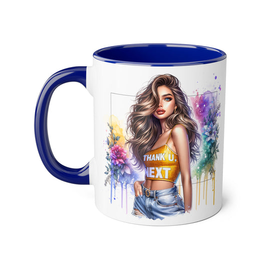 Thank U, Next Artistic Floral Accent Mug, Thank U Next Coffee Cup, Colorful Tea Mug, Gift for Her, Inspirational Art Drinkware