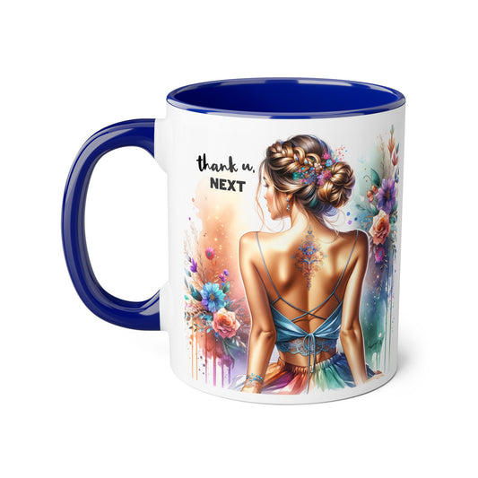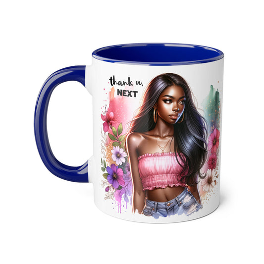 Thank U, Next Colorful Floral Accent Mug, Thank U Next Coffee Cup, Artistic Drinkware for Her, Unique Gift for Women, Motivational Mug, Birthday Gift