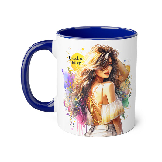 Thank U, Next Colorful Accent Mug with Glamorous Design - Perfect Gift for Tea Lovers, Trendy Home Decor, Motivational Coffee Cup, Birthday Present