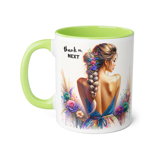 Thank U, Next Colorful Floral Accent Mug, Inspirational Coffee Cup, Gift for Her, Thank You Next Mug, Art Mug, Perfect for Birthdays, Anniversaries