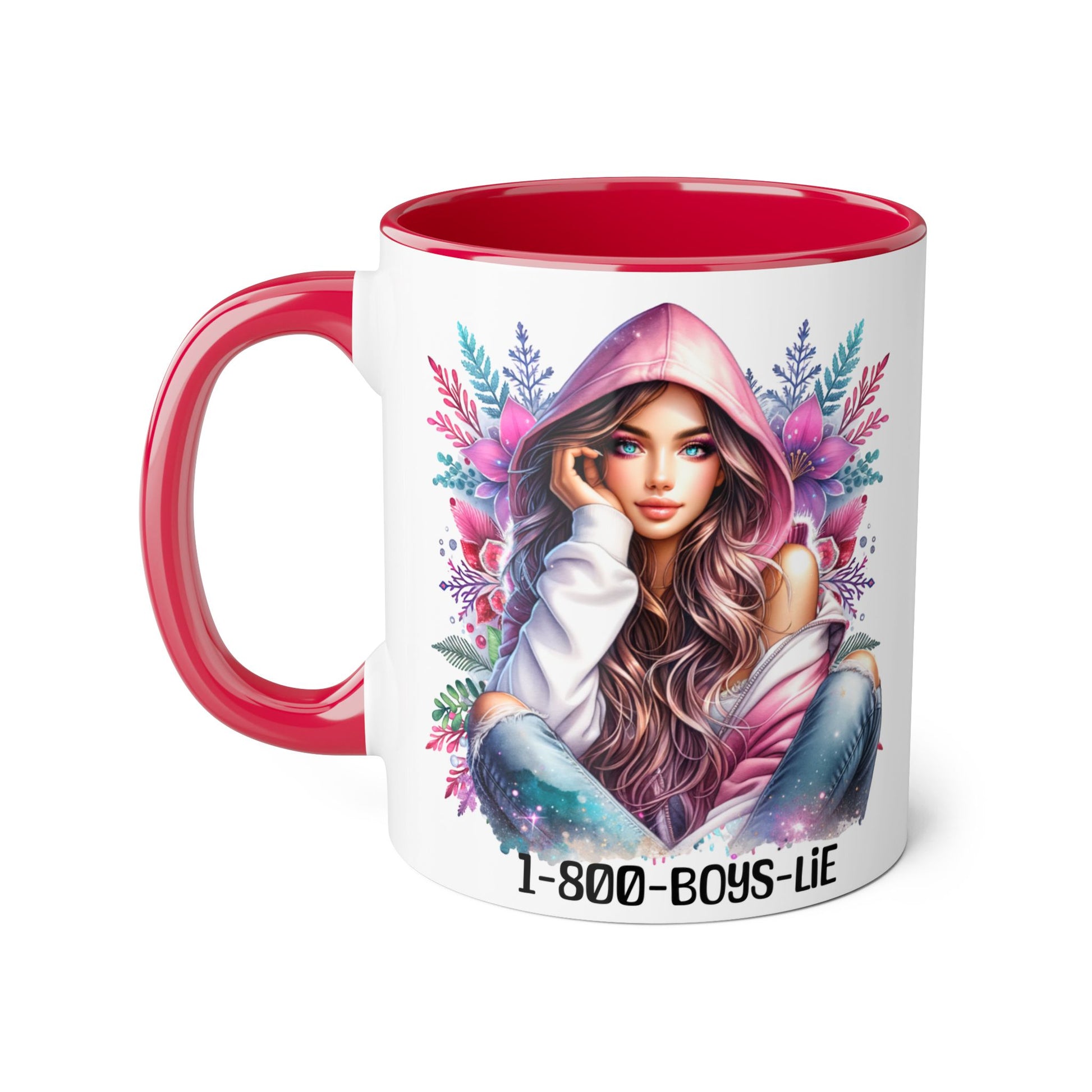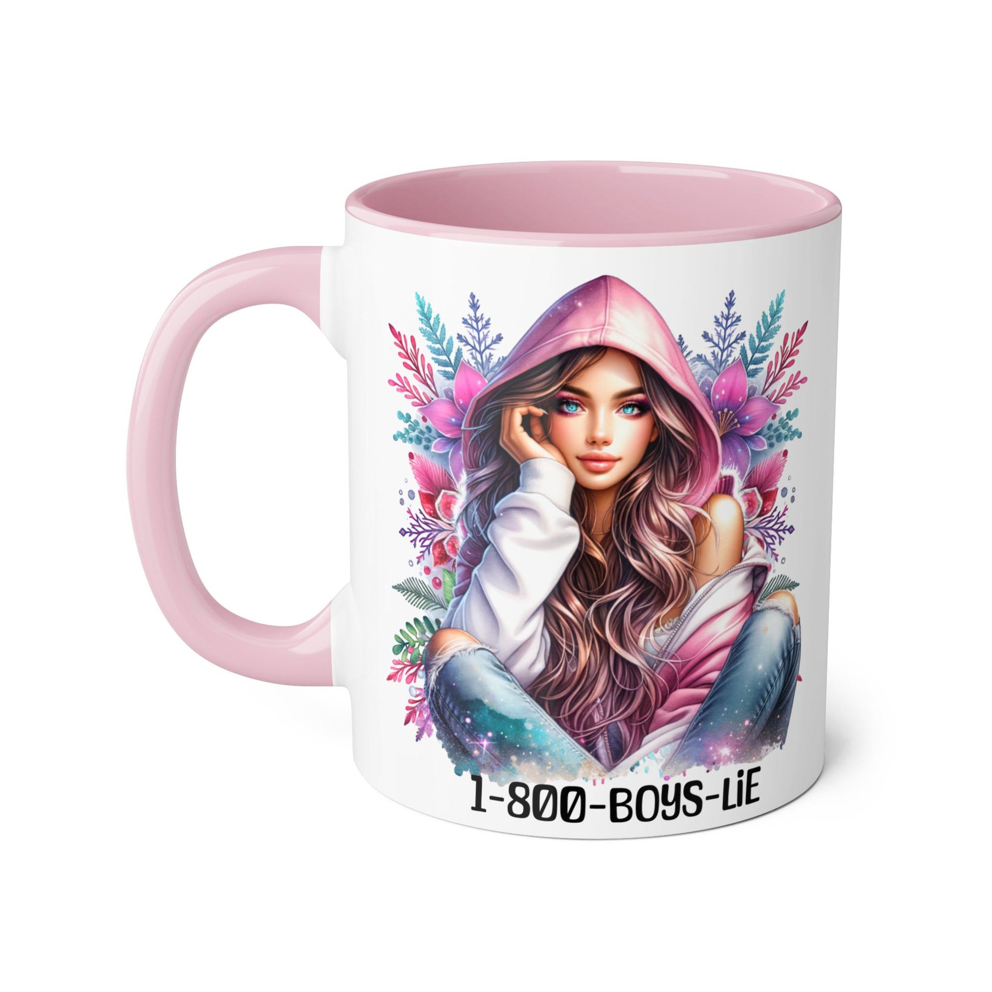 1-800-BOYS-LIE Accent Mug, Floral Coffee Cup, Funny Gift for Her, Unique Tea Mug, Cute Lover's Present