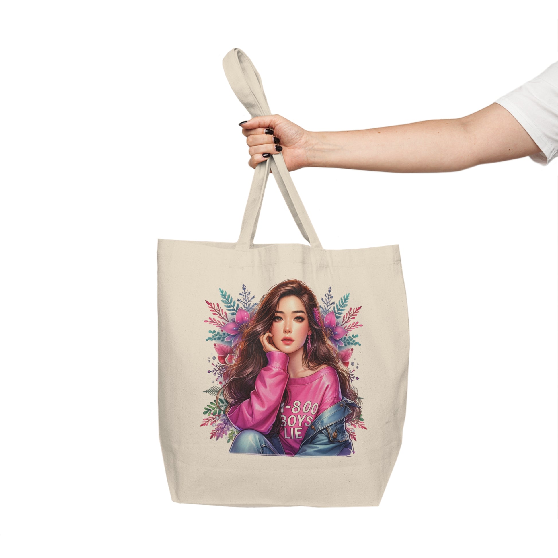 1-800-Boys-Lie Chic Floral Tote Bag, Fashionable Canvas Shopper, Girly Eco-Friendly Tote, Stylish Grocery Bag, Cute Gift for Her, Everyday Carryall