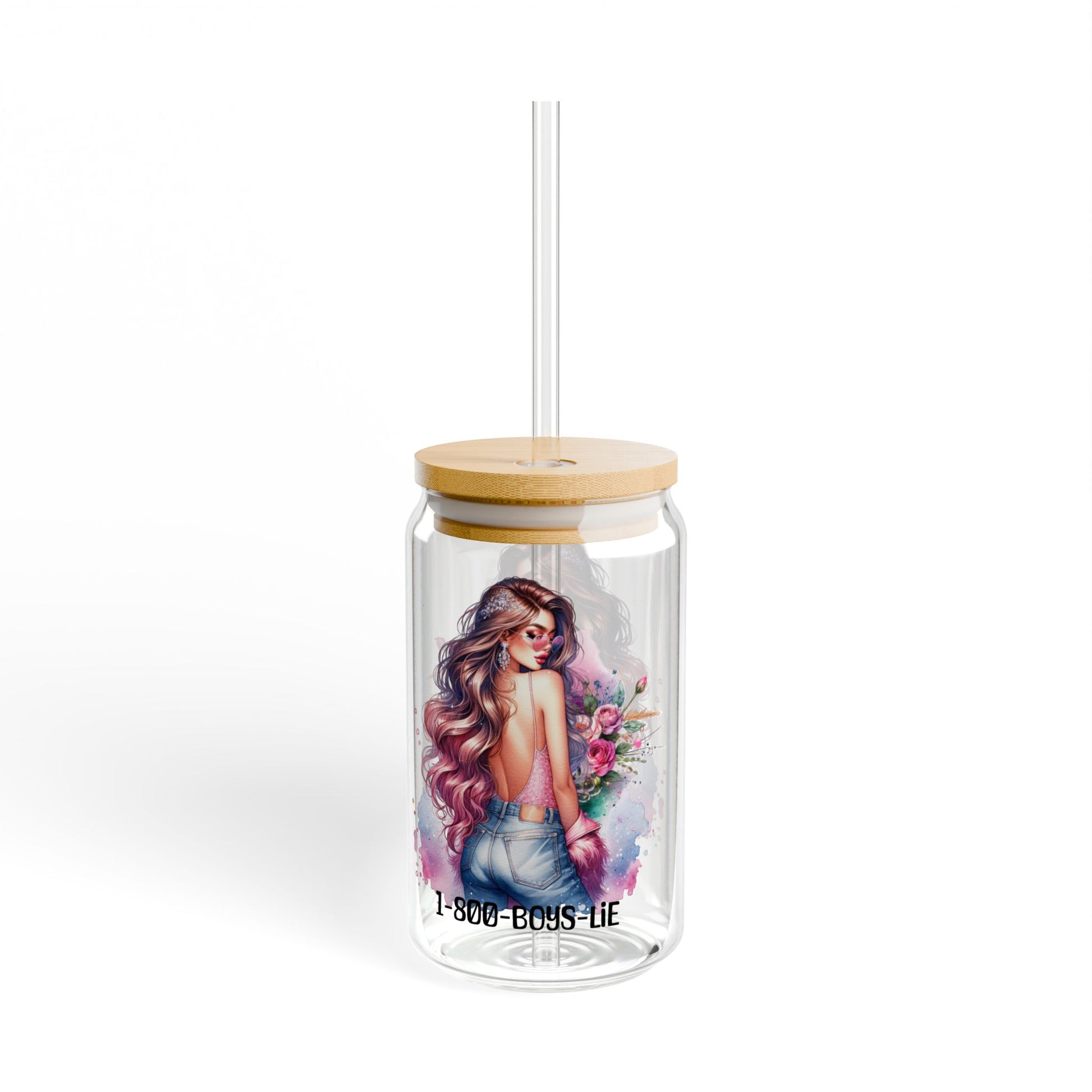 1-800-Boys-Lie Chic Sipper Glass with Straw, Trendy Beverage Container, Perfect Gift for Friends, Eco-Friendly Glass, 1-800-BOYS-LIE