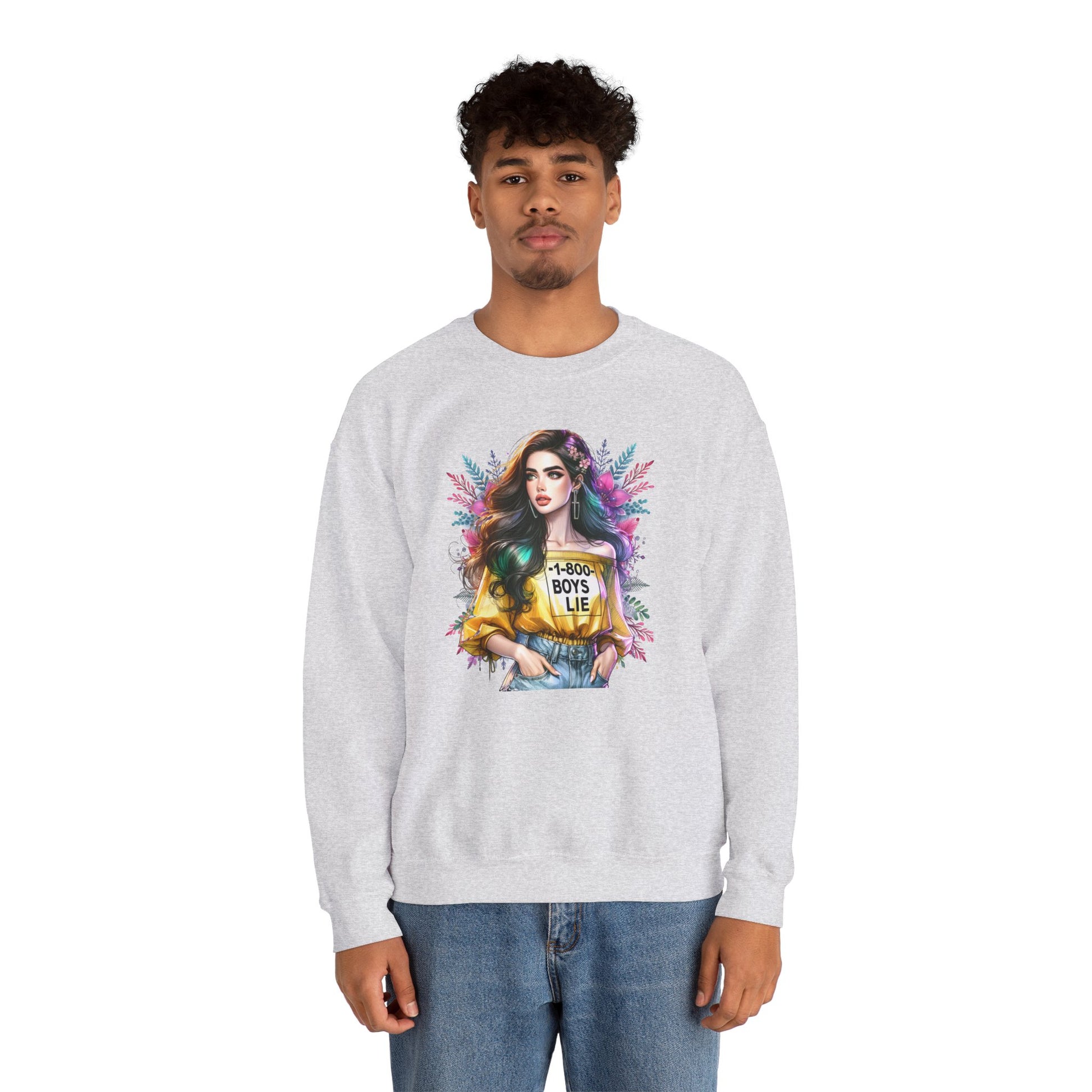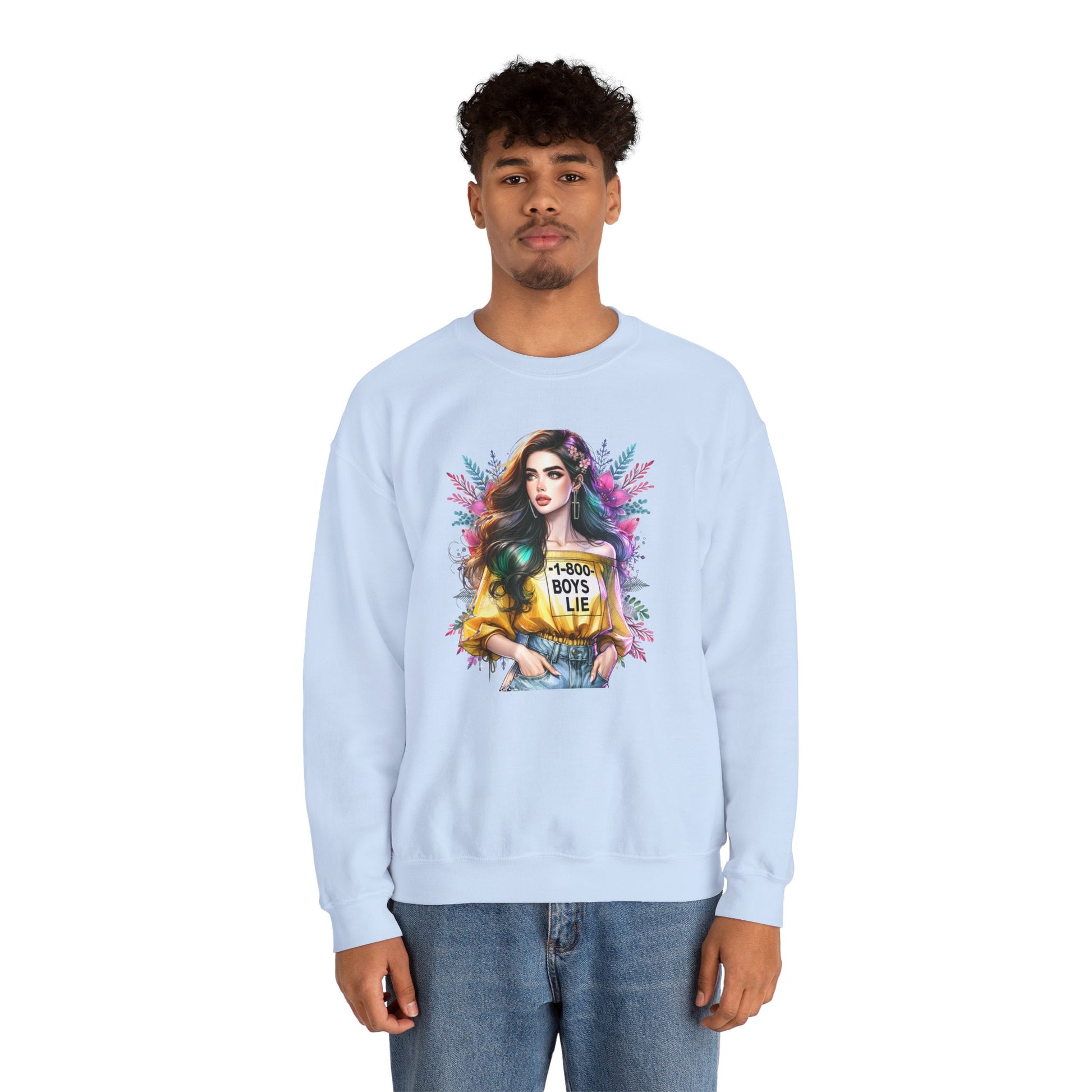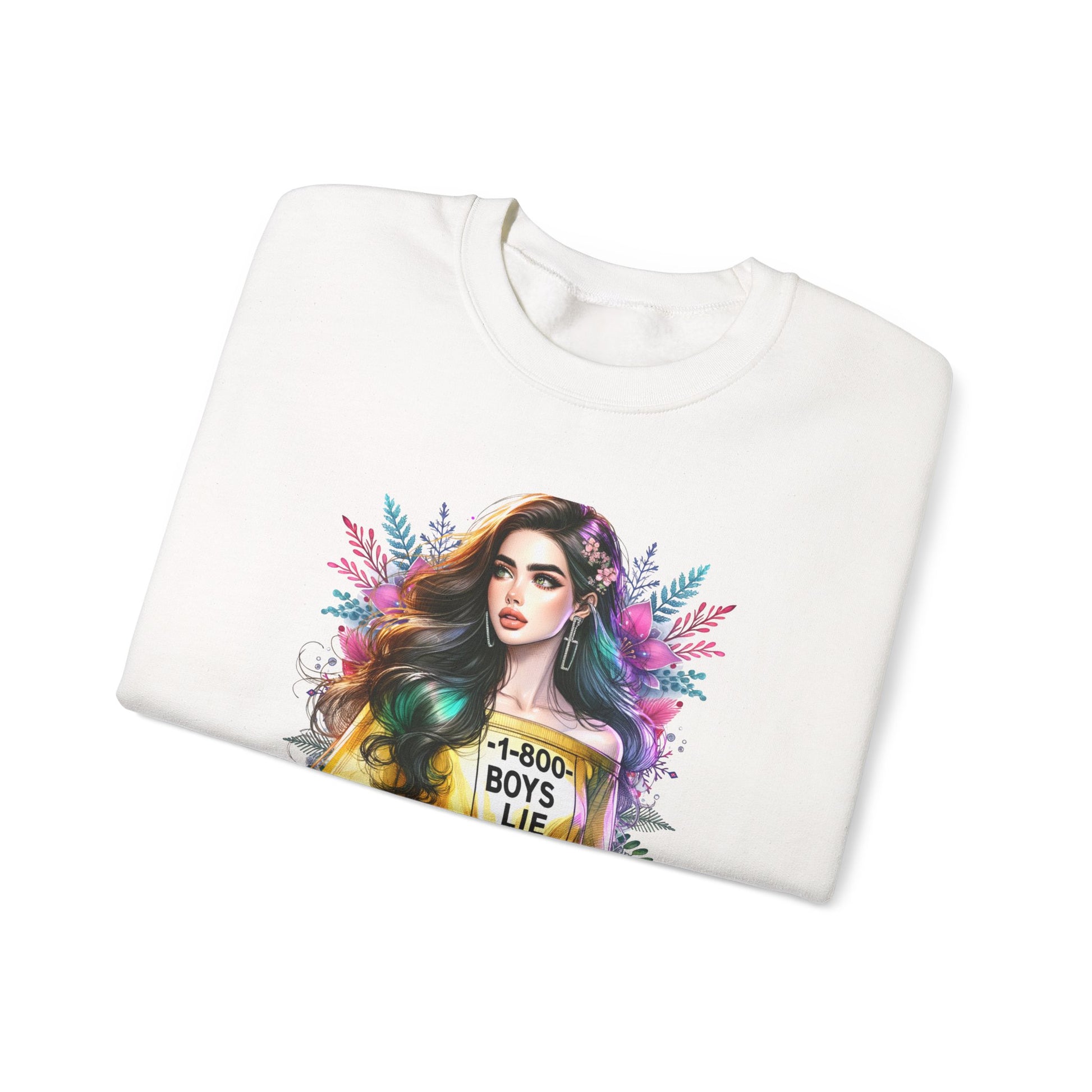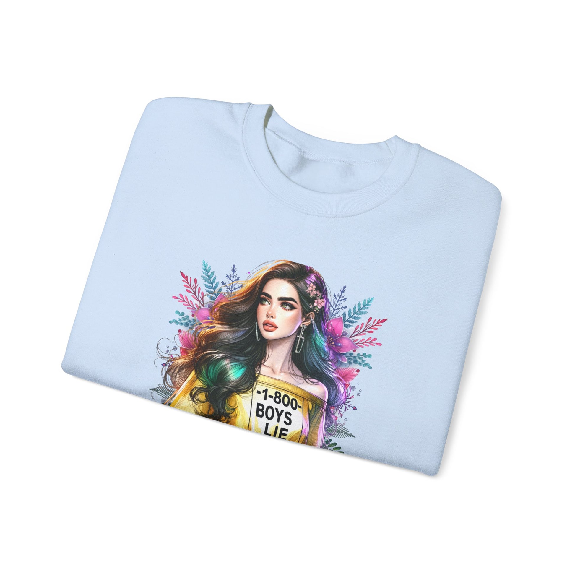 1-800-Boys-Lie Colorful Graphic Crewneck Sweatshirt - 'Boys Lie' Design, Unisex Sweatshirt, Trendy Gift, Casual Wear, Comfortable Outfit