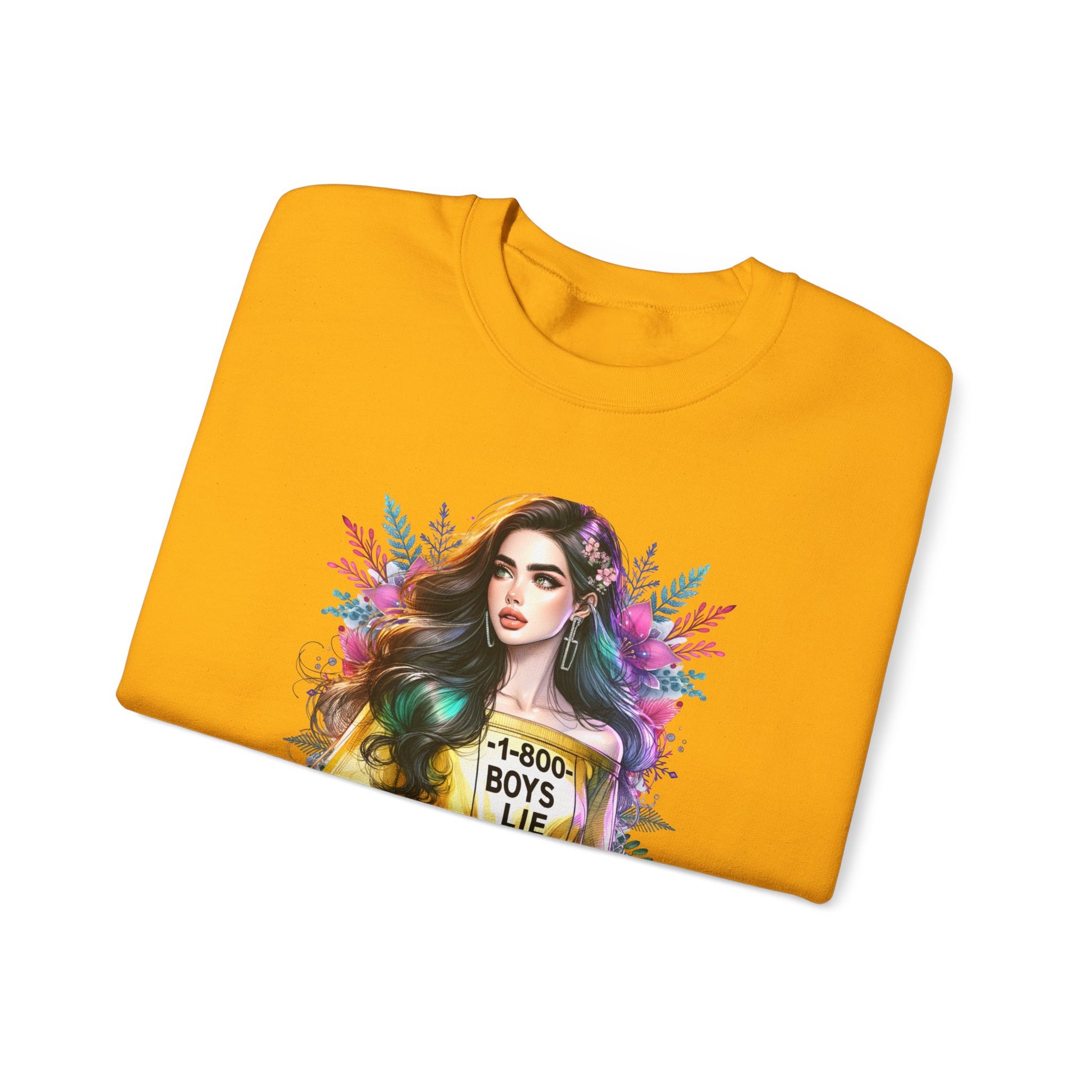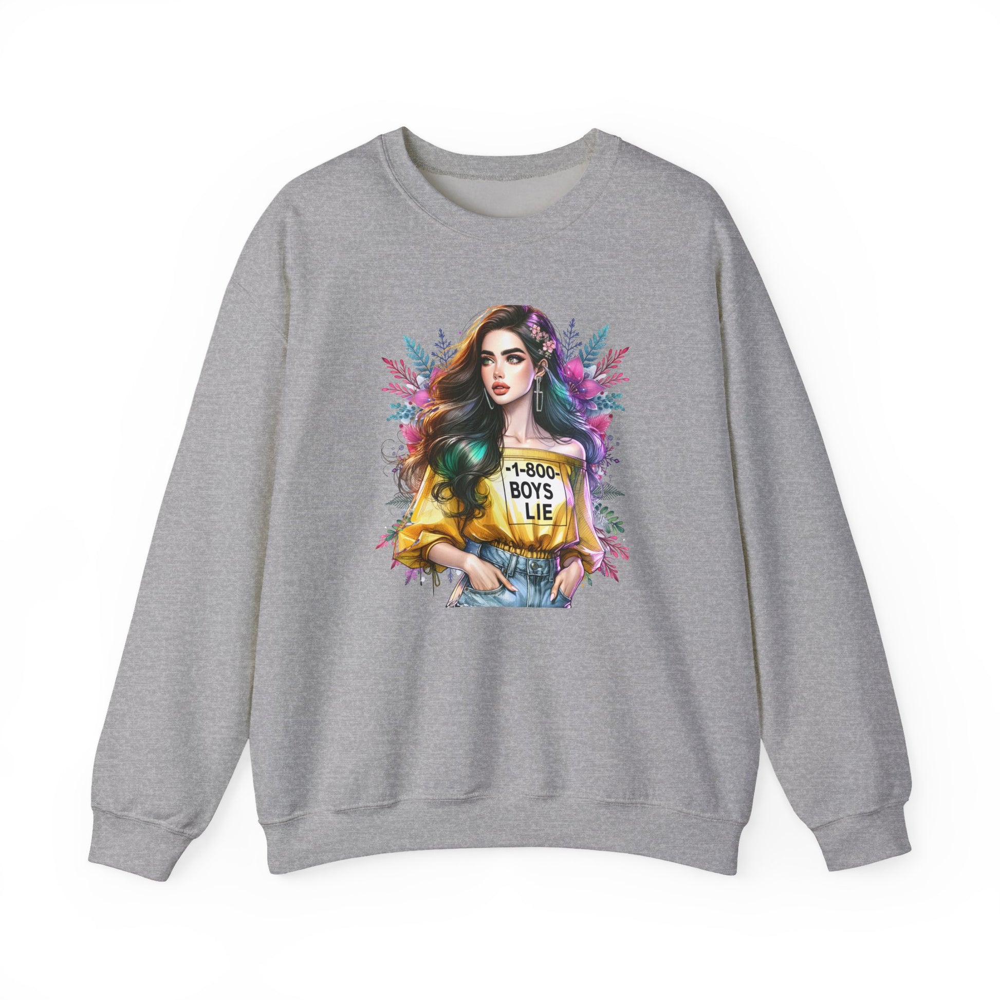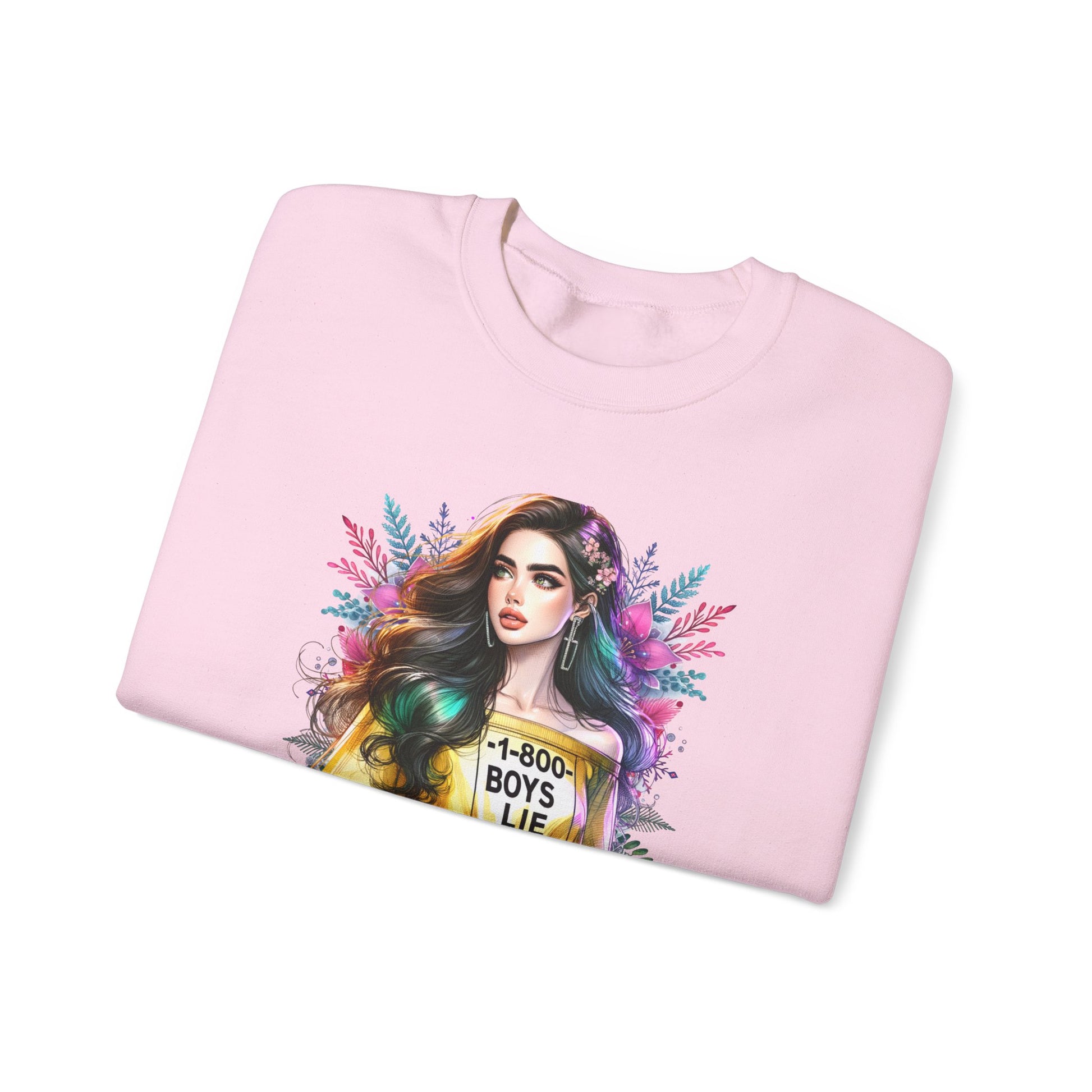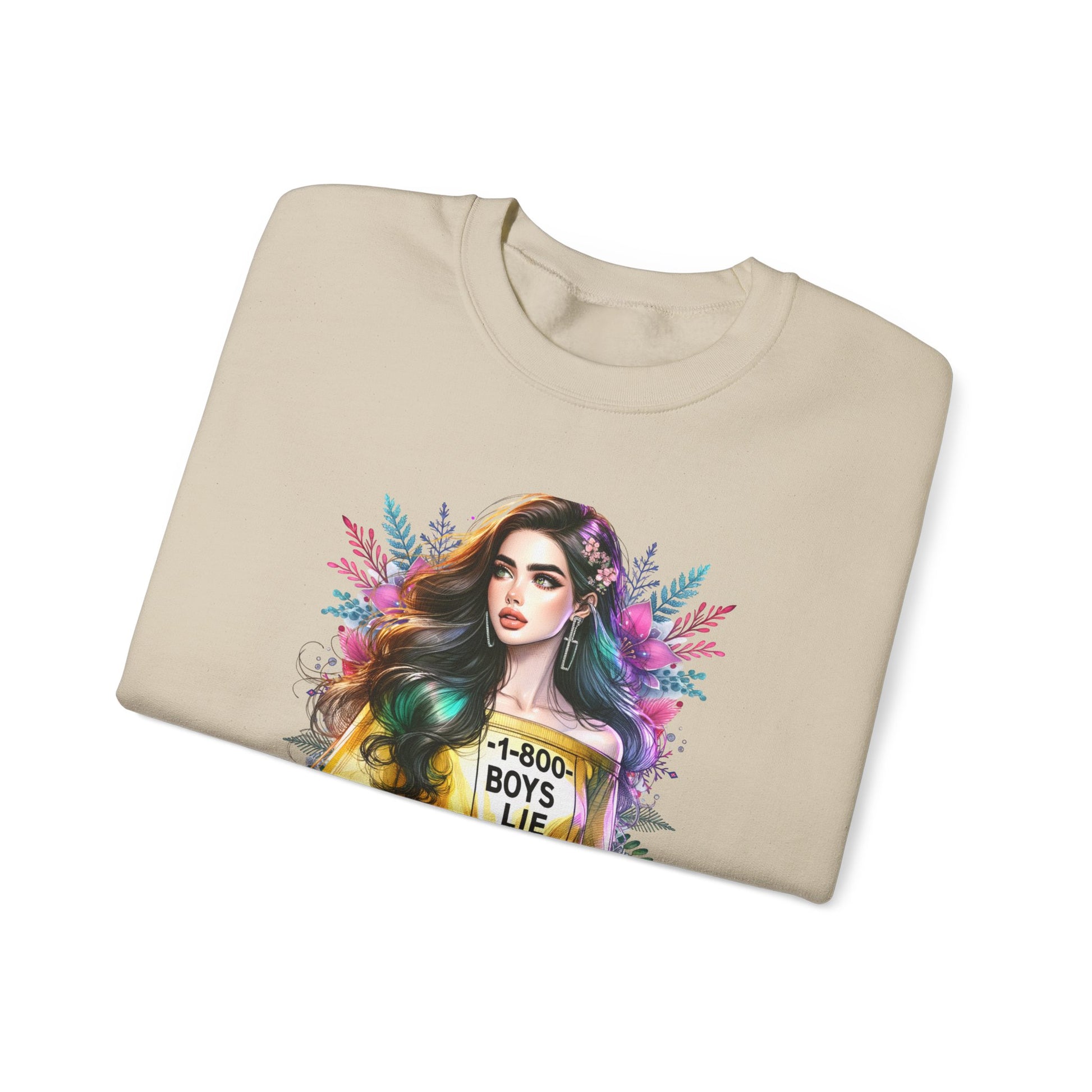 1-800-Boys-Lie Colorful Graphic Crewneck Sweatshirt - 'Boys Lie' Design, Unisex Sweatshirt, Trendy Gift, Casual Wear, Comfortable Outfit
