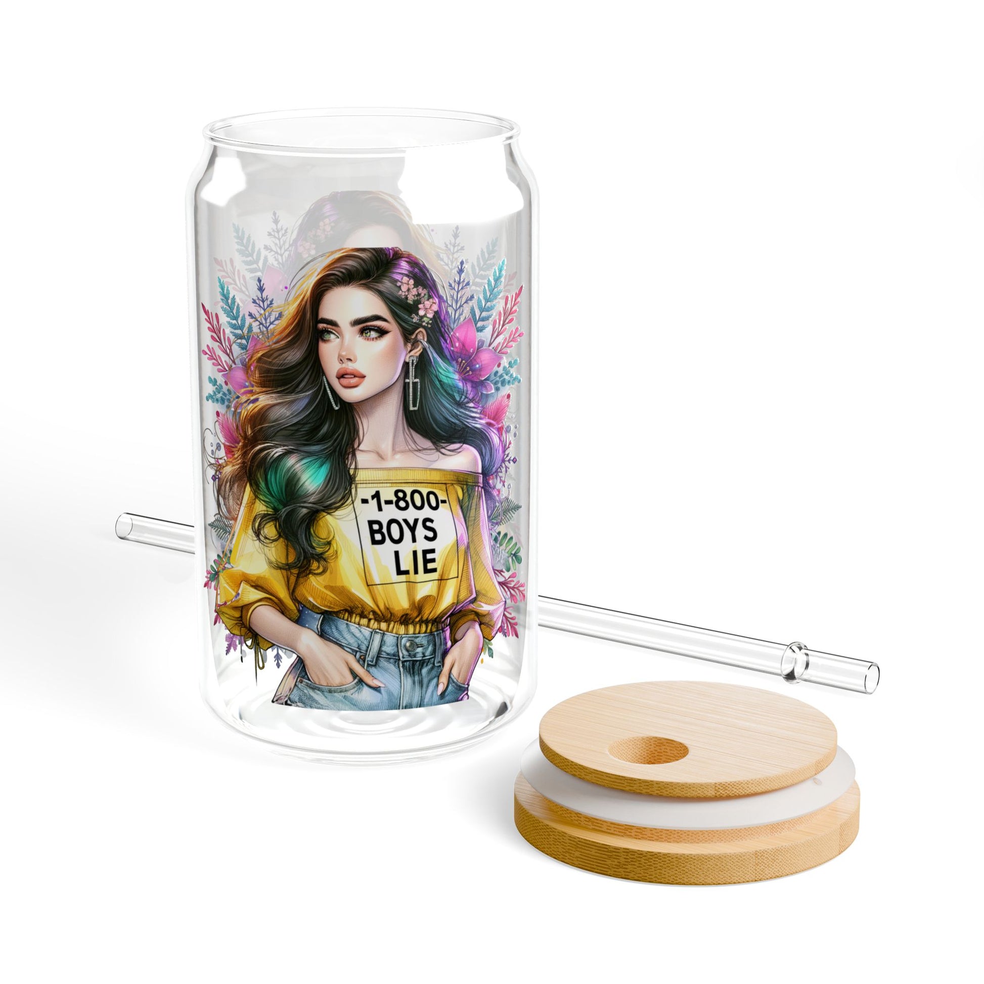 1-800-Boys-Lie Cool and Unique Sipper Glass, 16oz Sippy Cup, Trendy Drinkware, Gifts for Her, Summer Must-Have, Home Decor