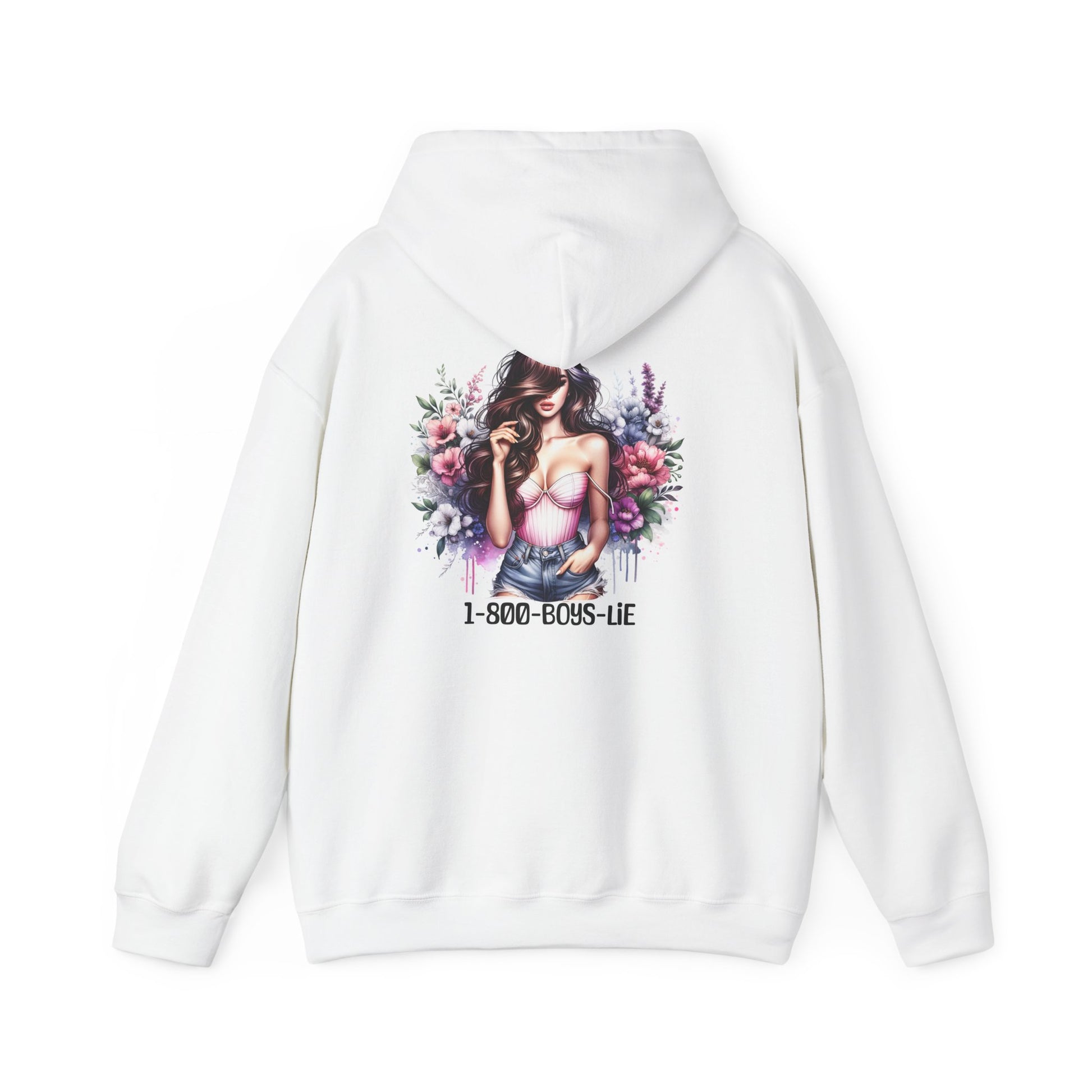 1-800-Boys-Lie Floral Art Hooded Sweatshirt - Cozy Gift for Trendsetters, Women's Fashion, Spring Style, Casual Wear, Birthday Present