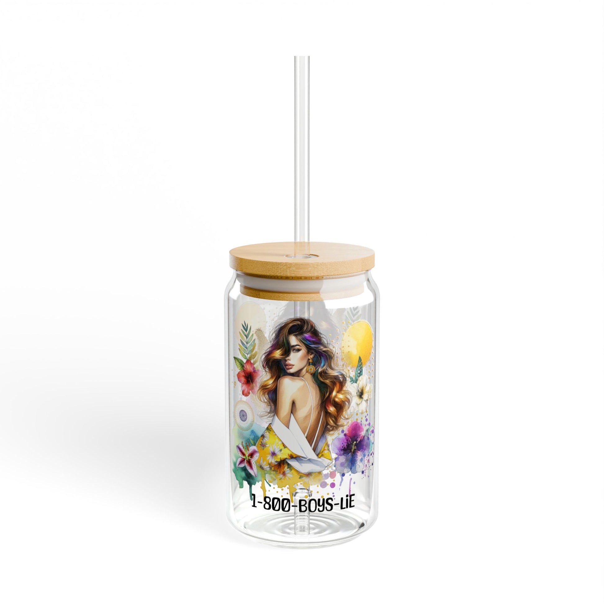 1-800-Boys-Lie Floral Sipper Glass, Vibrant Drinkware for Boss Babes, 16oz Stylish Water Bottle, Gift for Her, Home or Office Decor