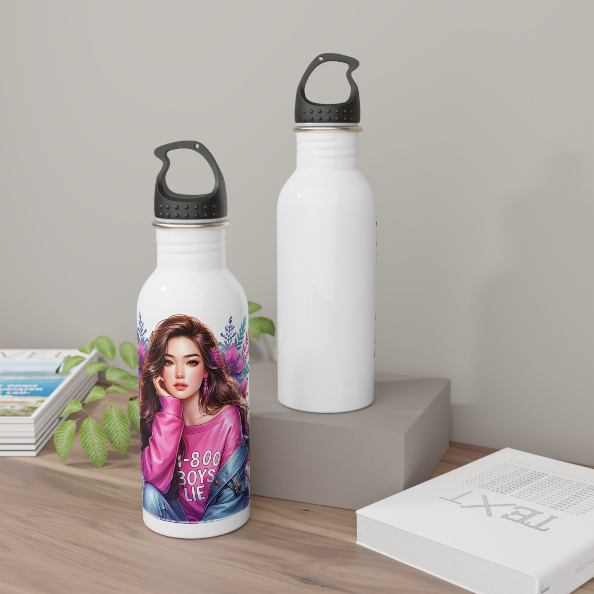 1-800-Boys-Lie Stylish Stainless Steel Water Bottle with Floral Design - Perfect for Hydration, Gym, Travel, Gifts, Fashion