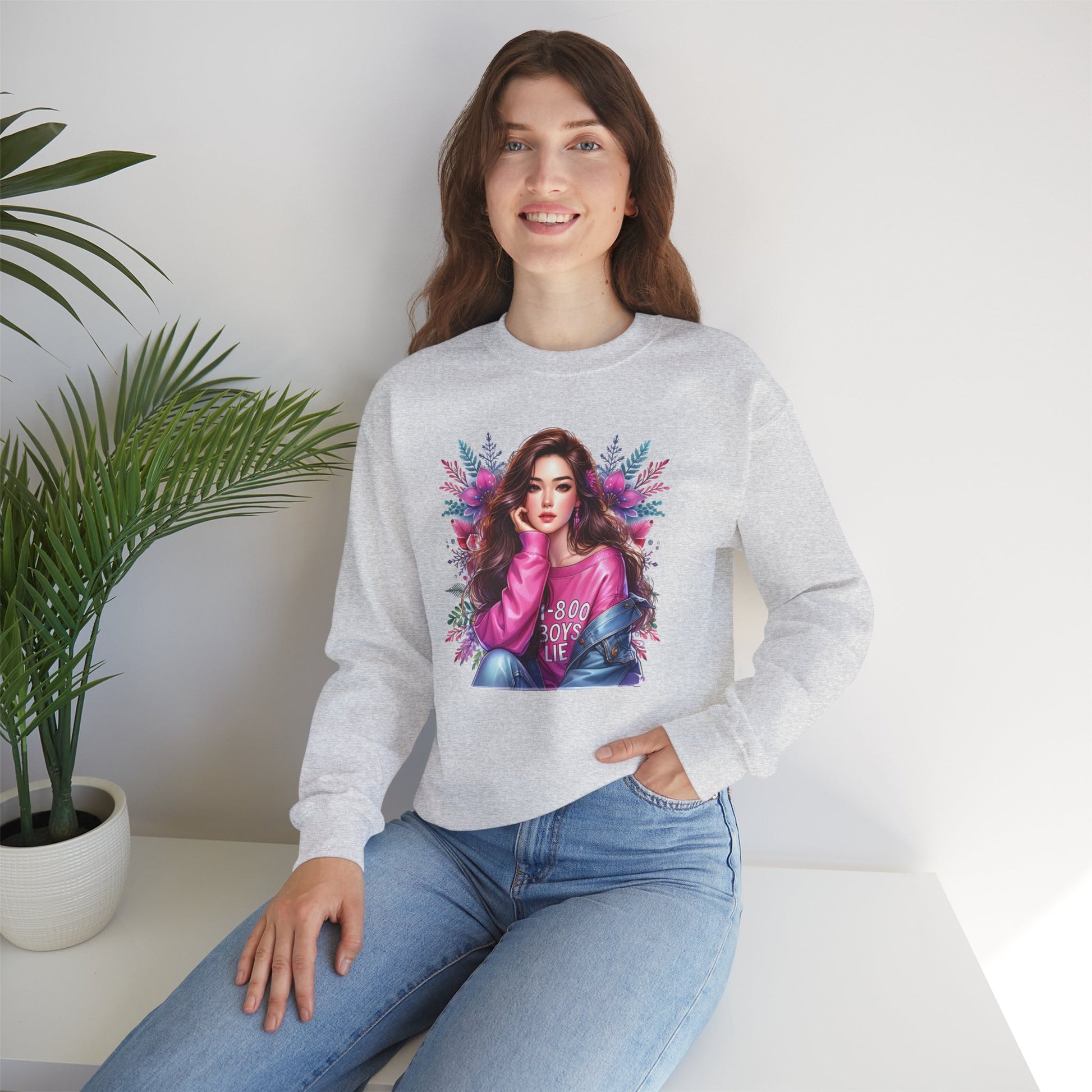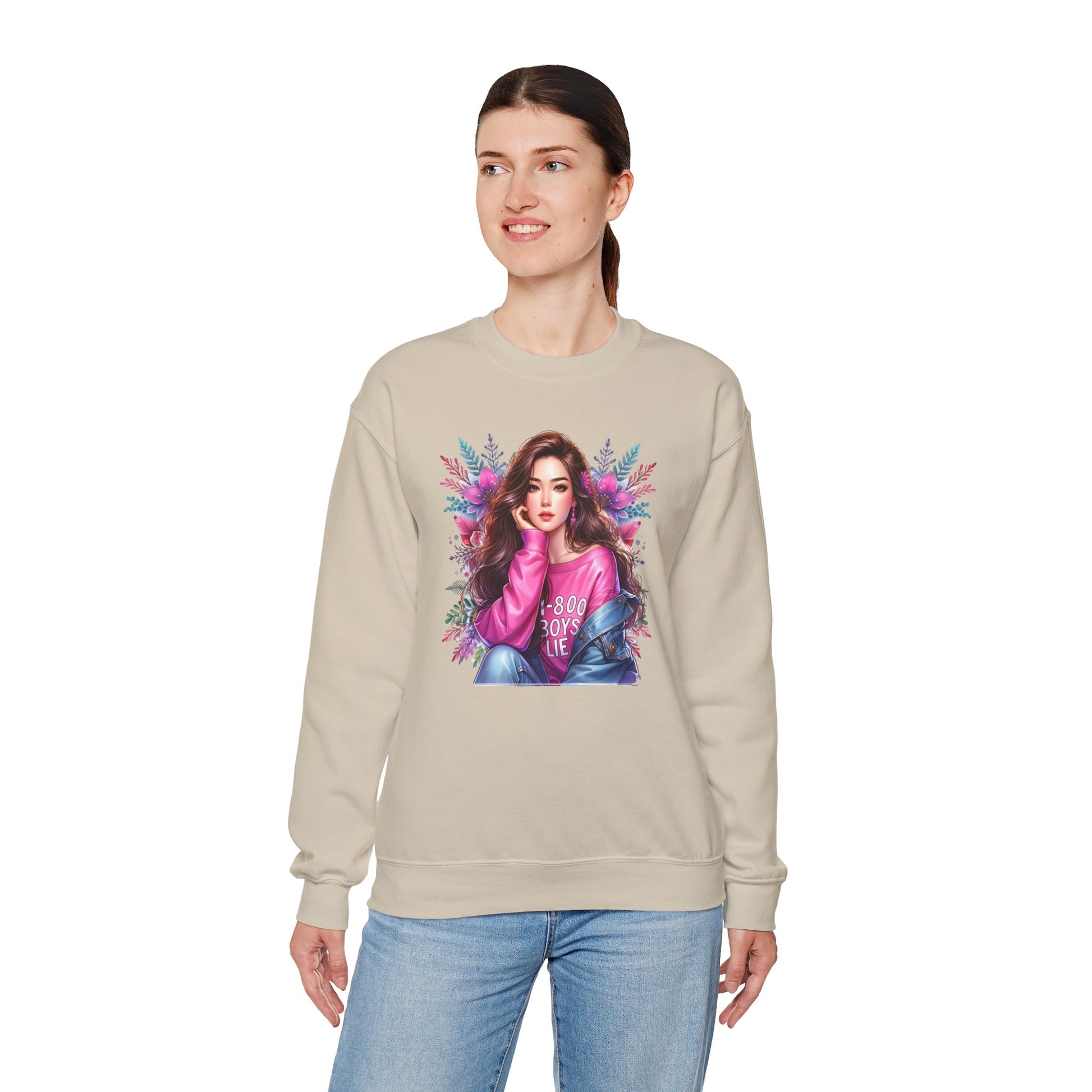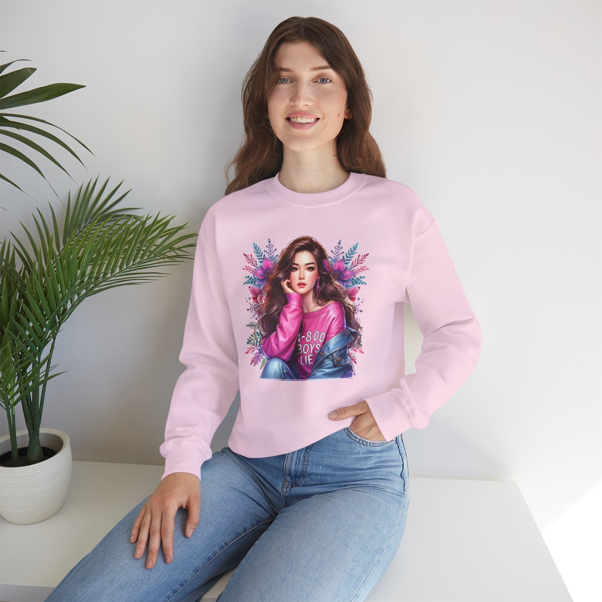 1-800-Boys-Lie Trendy Crewneck Sweatshirt - Cozy Unisex Pullover, Perfect for Casual Days, Gifts for Her, Cute Fashion Layering, Everyday Style