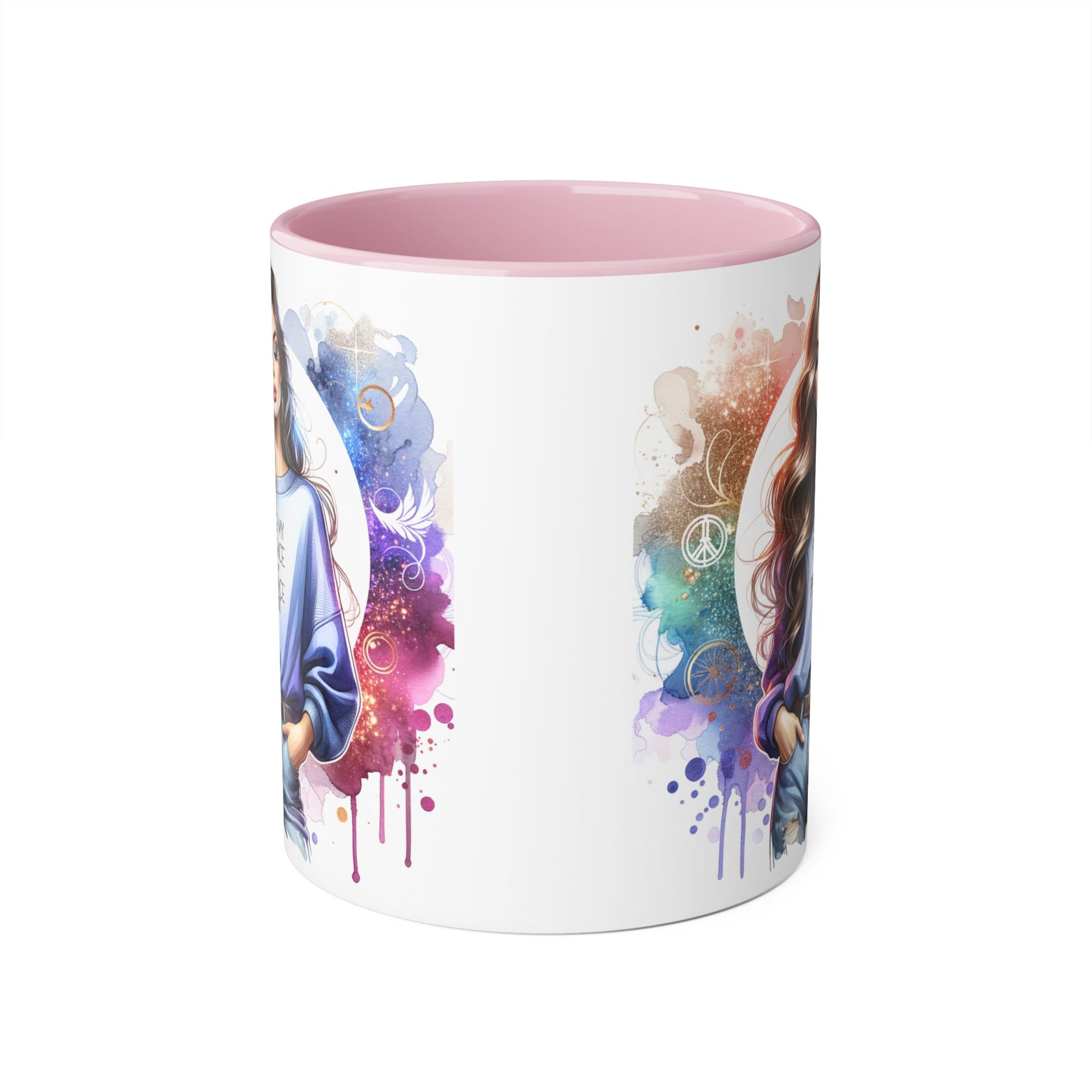 A stylish and modern accent 11oz mug with the phrase 'Be My Peace or Peace Out' printed on it. Perfect for enjoying your favorite hot beverage while feeling empowered and calm. Ideal for anyone who appreciates a daily dose of positivity and self-care. Relevant for Valentine's Day, Galentine's Day, birthdays, or as a thoughtful gift for a friend in need of some peace.