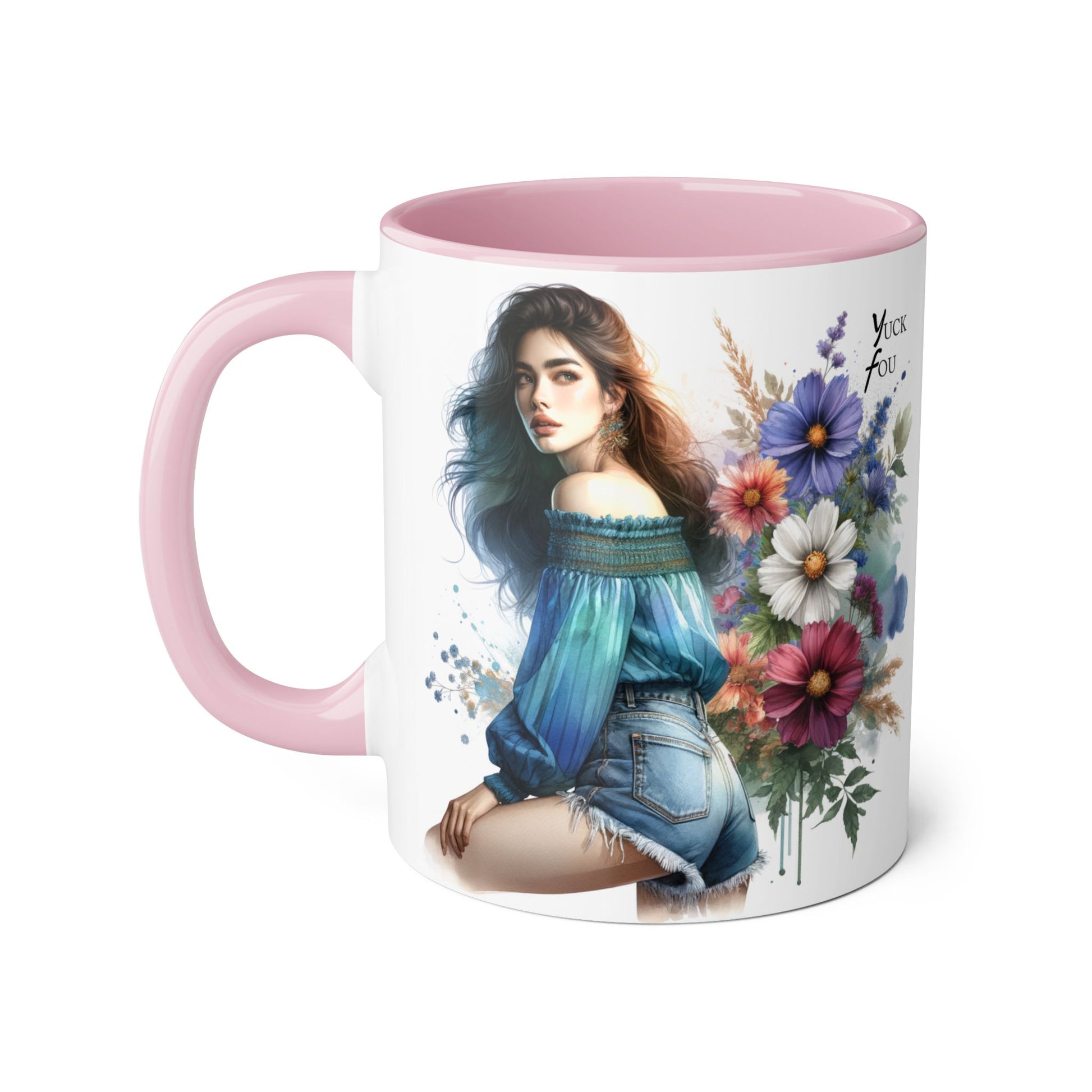 Bohemian Accent Mug - Yuck Fou Floral Design, Gift for Artists, Unique Coffee Cup, Home Decor, Stylish Drinkware