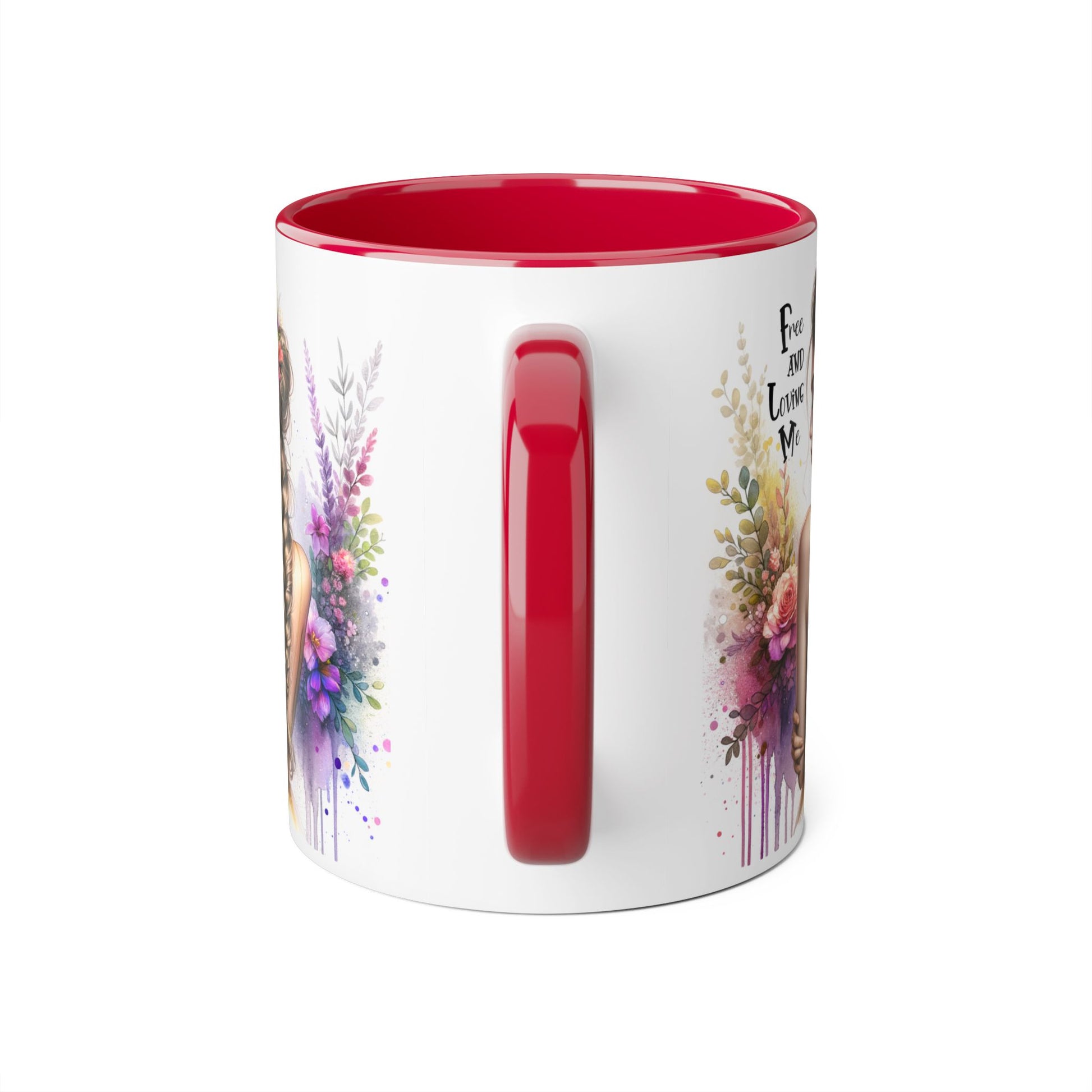 Bohemian Inspirational Mug, Free and Loving Me Coffee Cup, Unique Gift for Her, Floral Design, Tea Lover's Mug, Vintage Style Drinkware