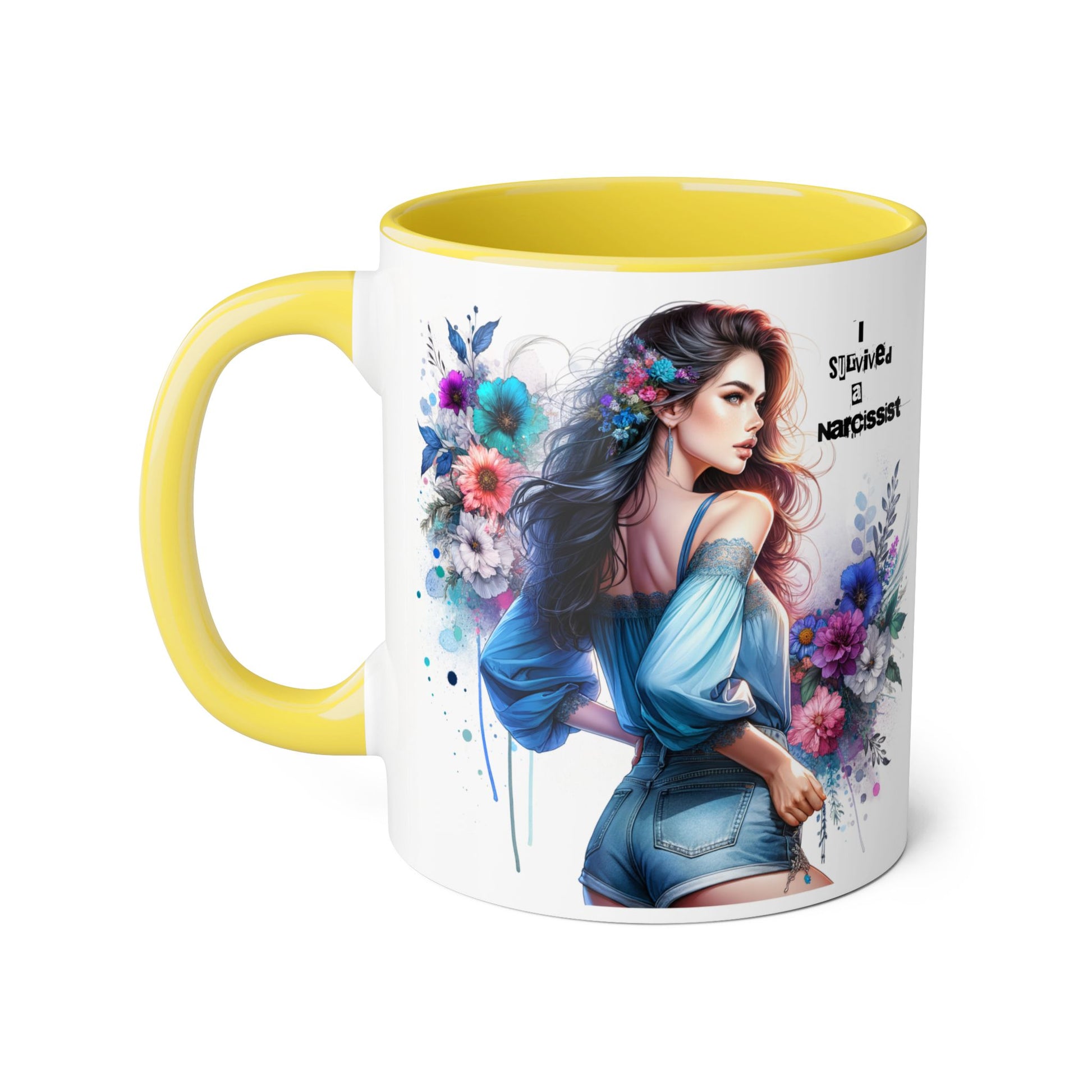 Bold Floral Accent Mug, 11oz - Perfect Gift for Coffee Lovers, Home Decor, Birthday Present, self-care gift, Inspirational Quote Mug