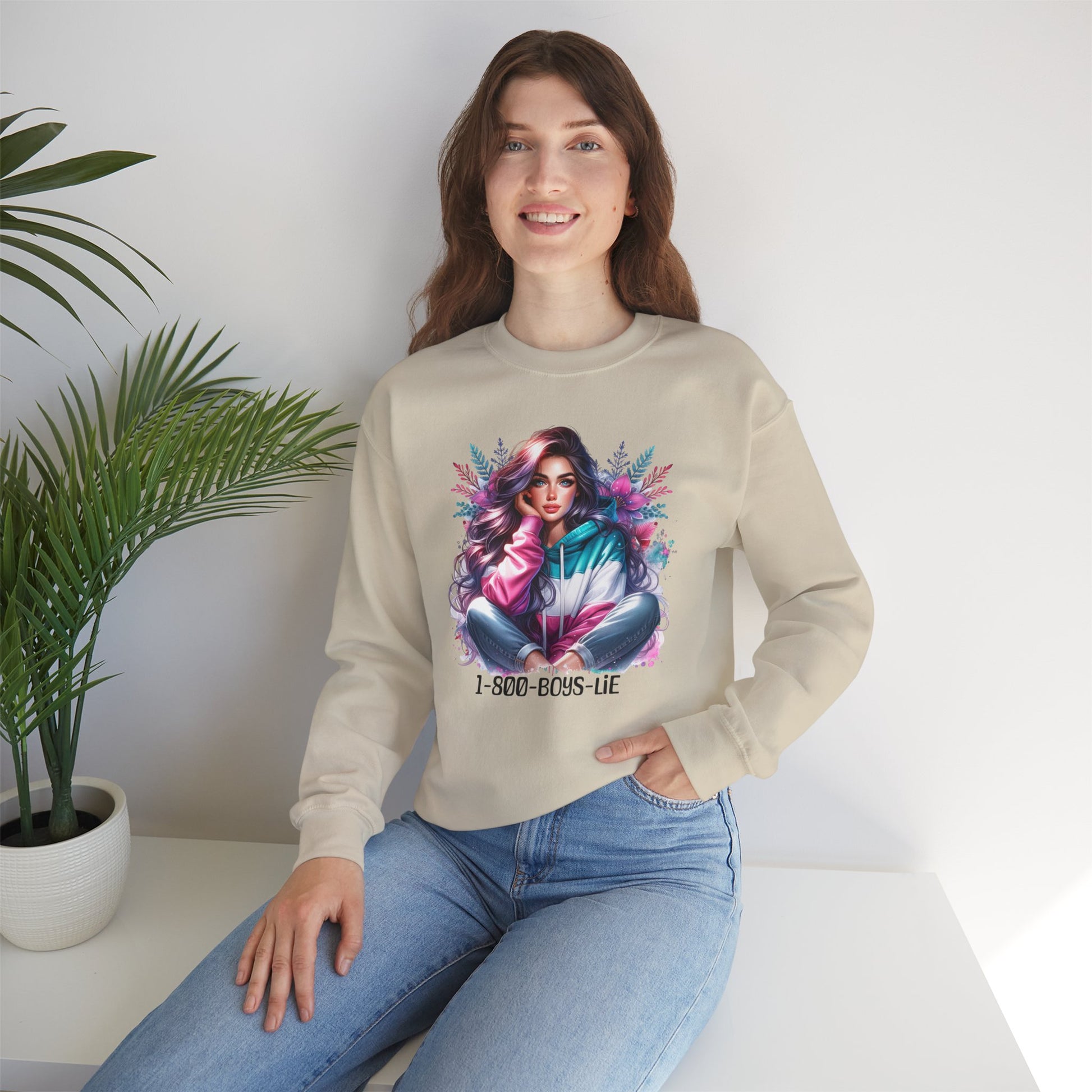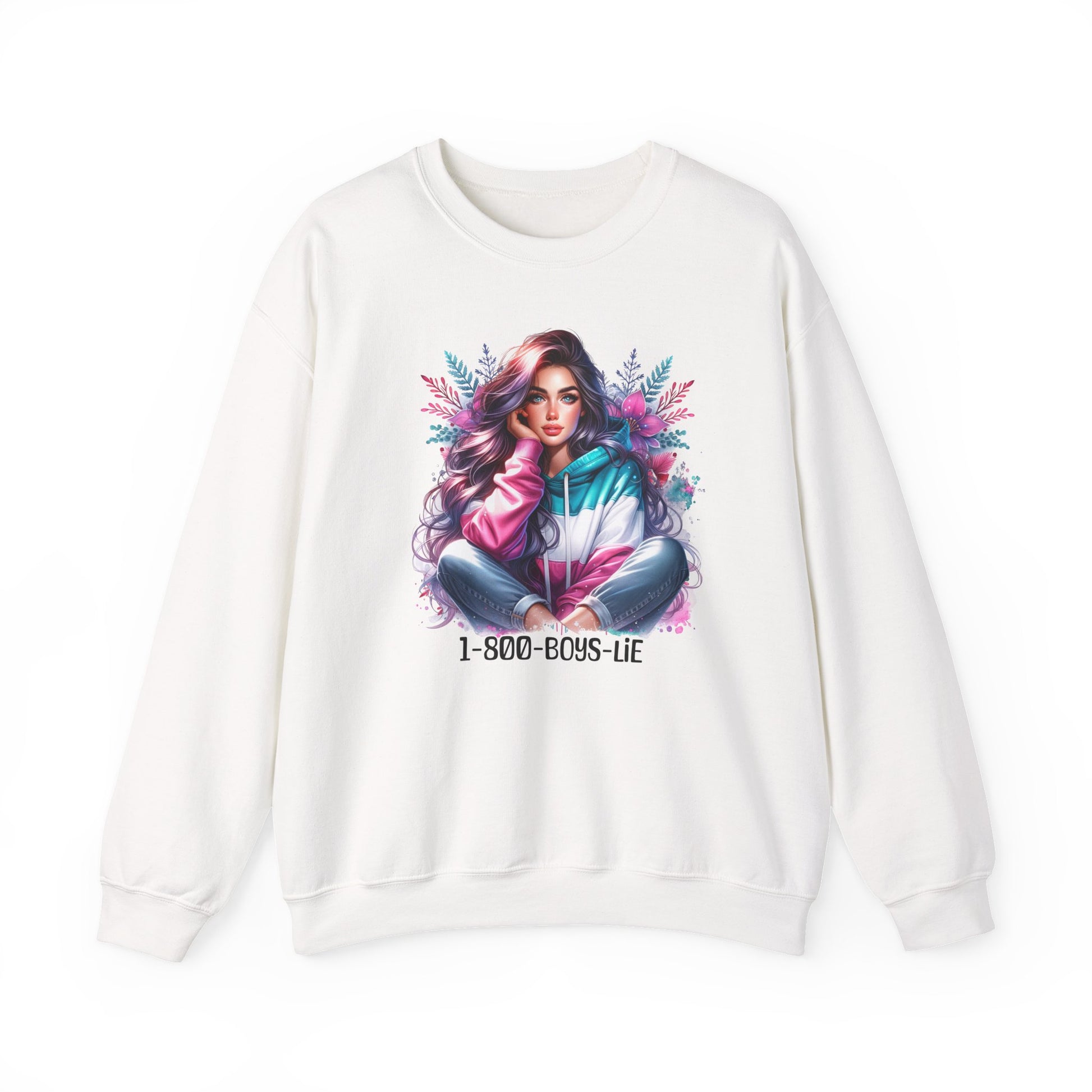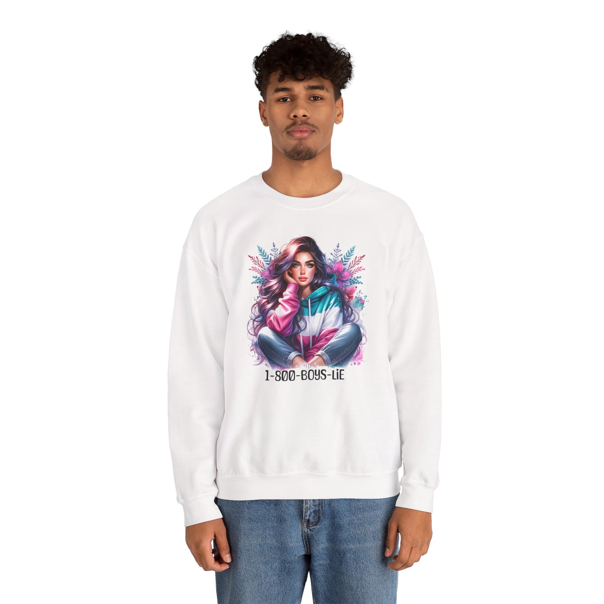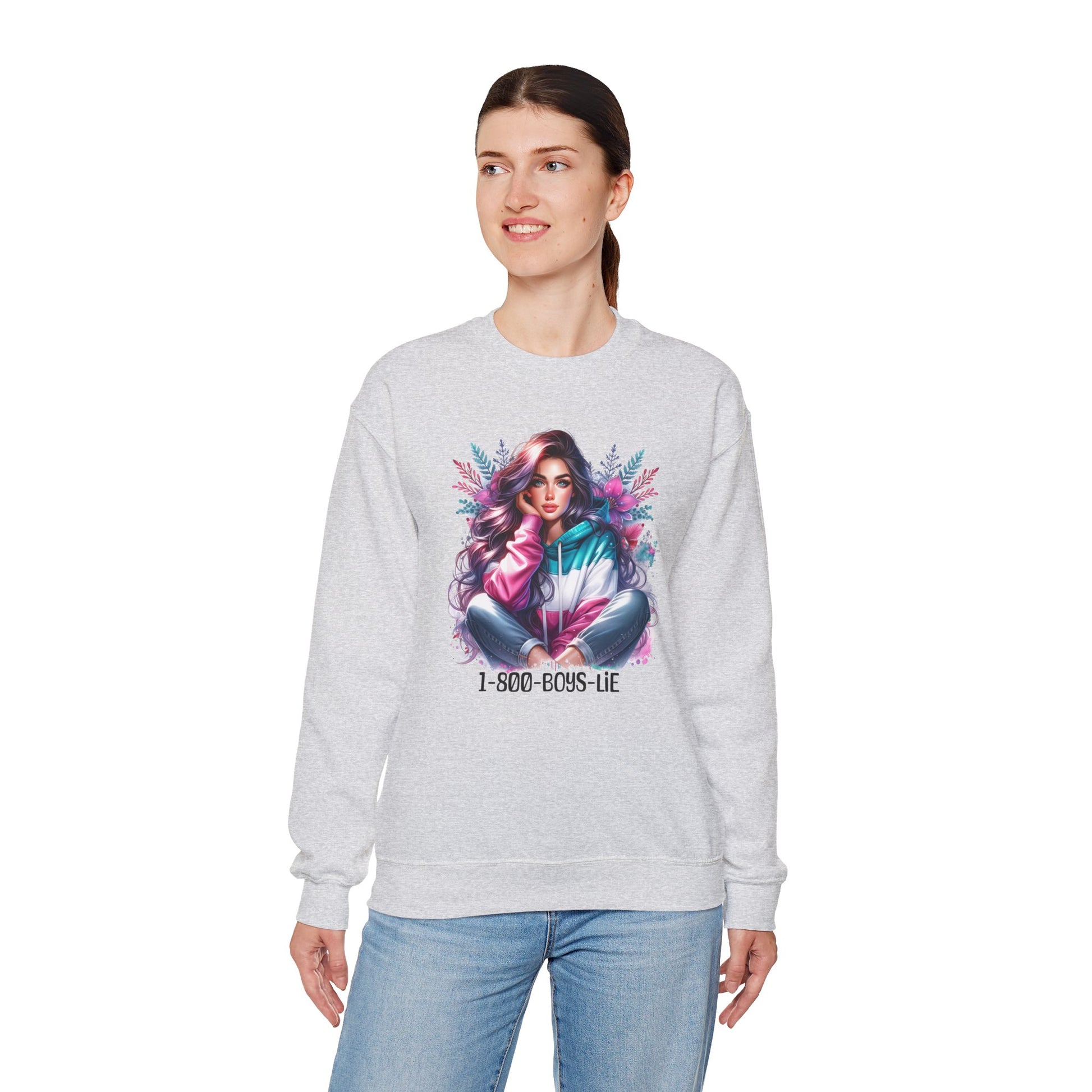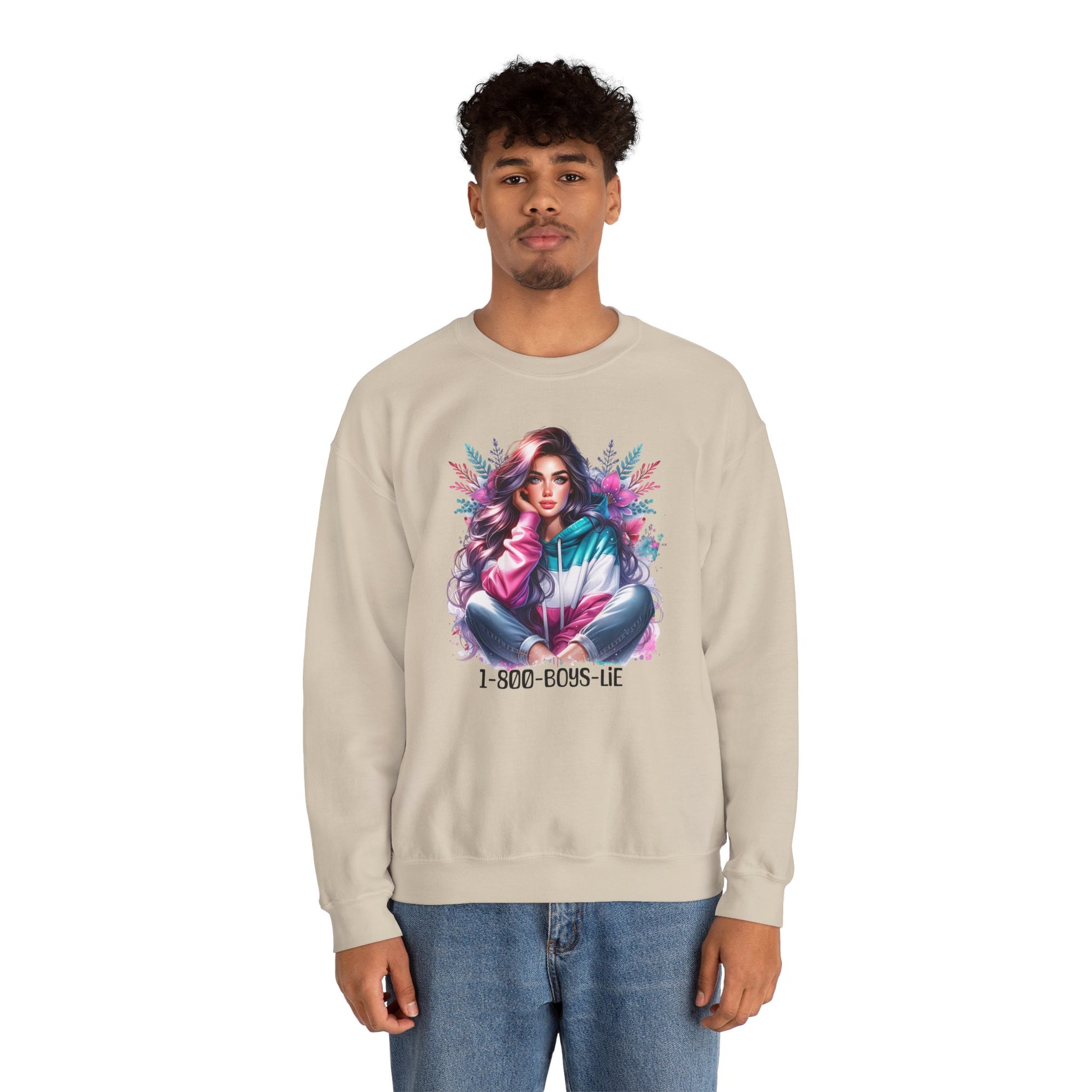 Chic Graphic Crewneck Sweatshirt - 1-800-BOYS-LIE, Cozy Sweatshirt, Fashion Sweatshirt, Casual Wear, Unique Gift, Trendy Outfit