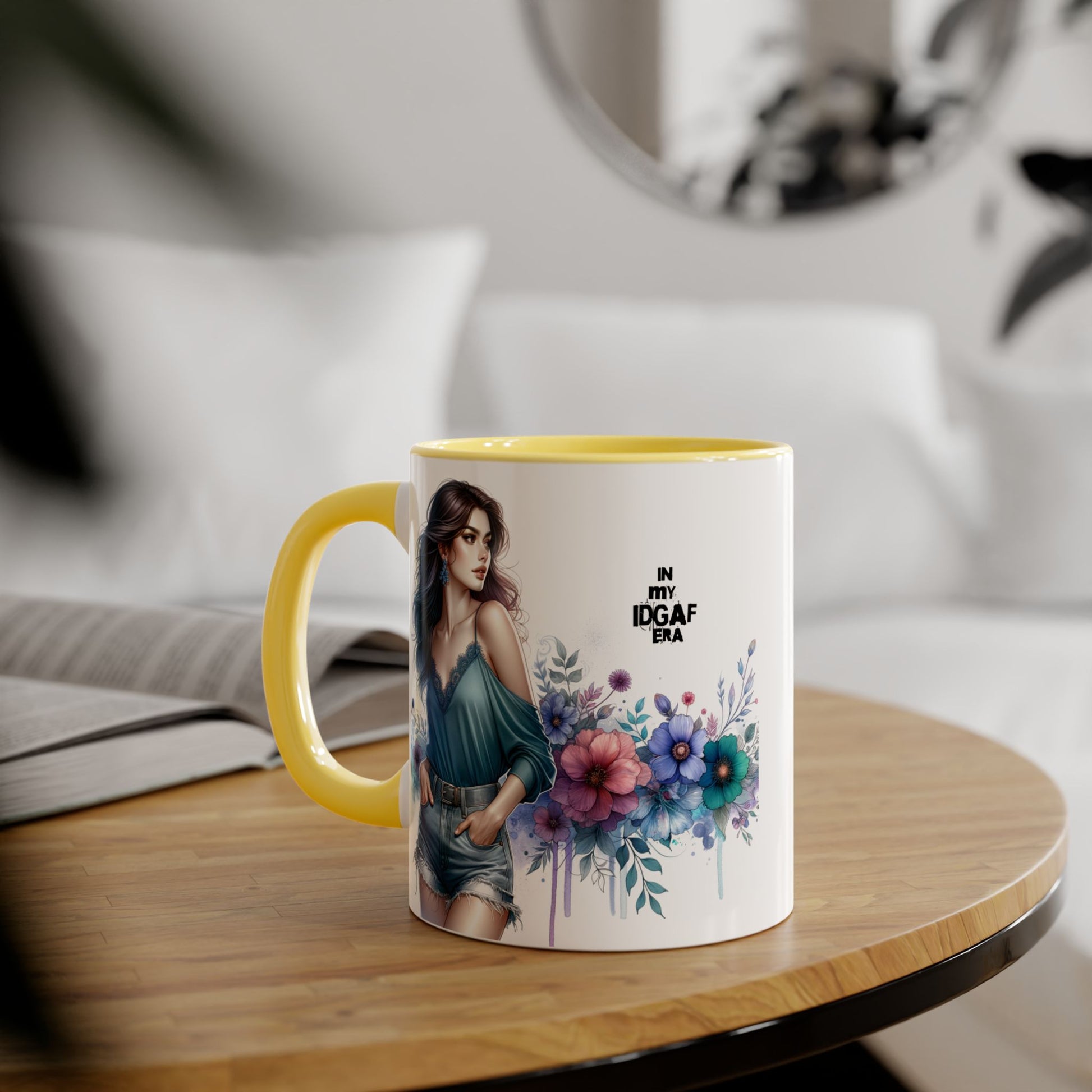 Chic IDGAF Accent Mug, Floral Art, Gift for Her, Coffee Lover, Unique Decor, Trendy Mug, Self-Care Gift