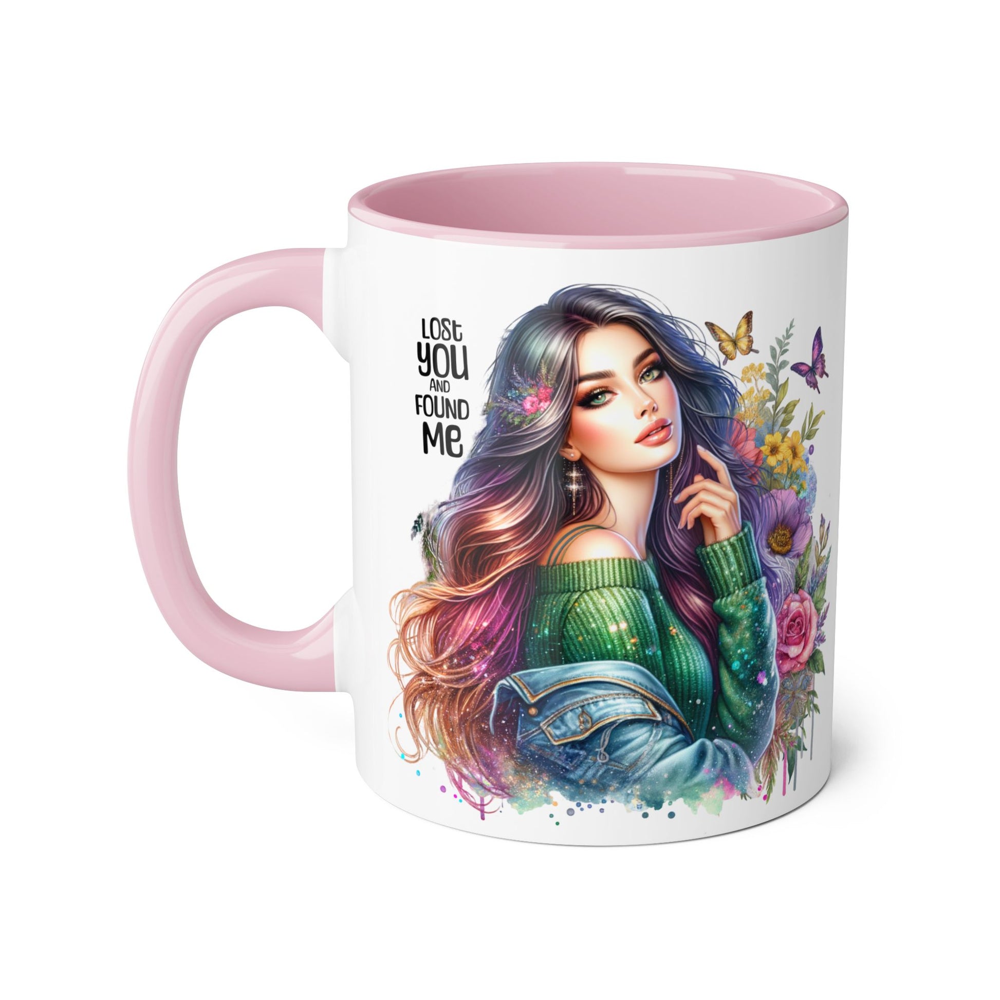 Colorful Accent Mug - "Lose You and Found Me" Design for Coffee Lovers, Unique Gift for Her, Floral Art Mug, Inspirational Drinkware