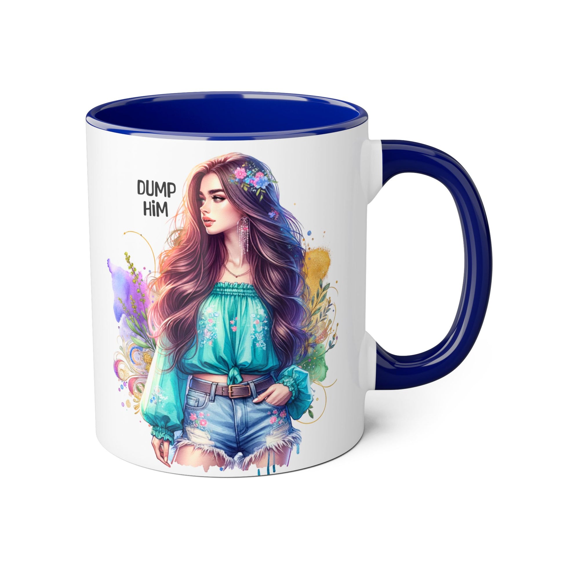 Colorful Dump Him Accent Mug, Inspirational Coffee Cup, Gift for Friends, Motivational Tea Mug, Fun Art Ceramic Cup