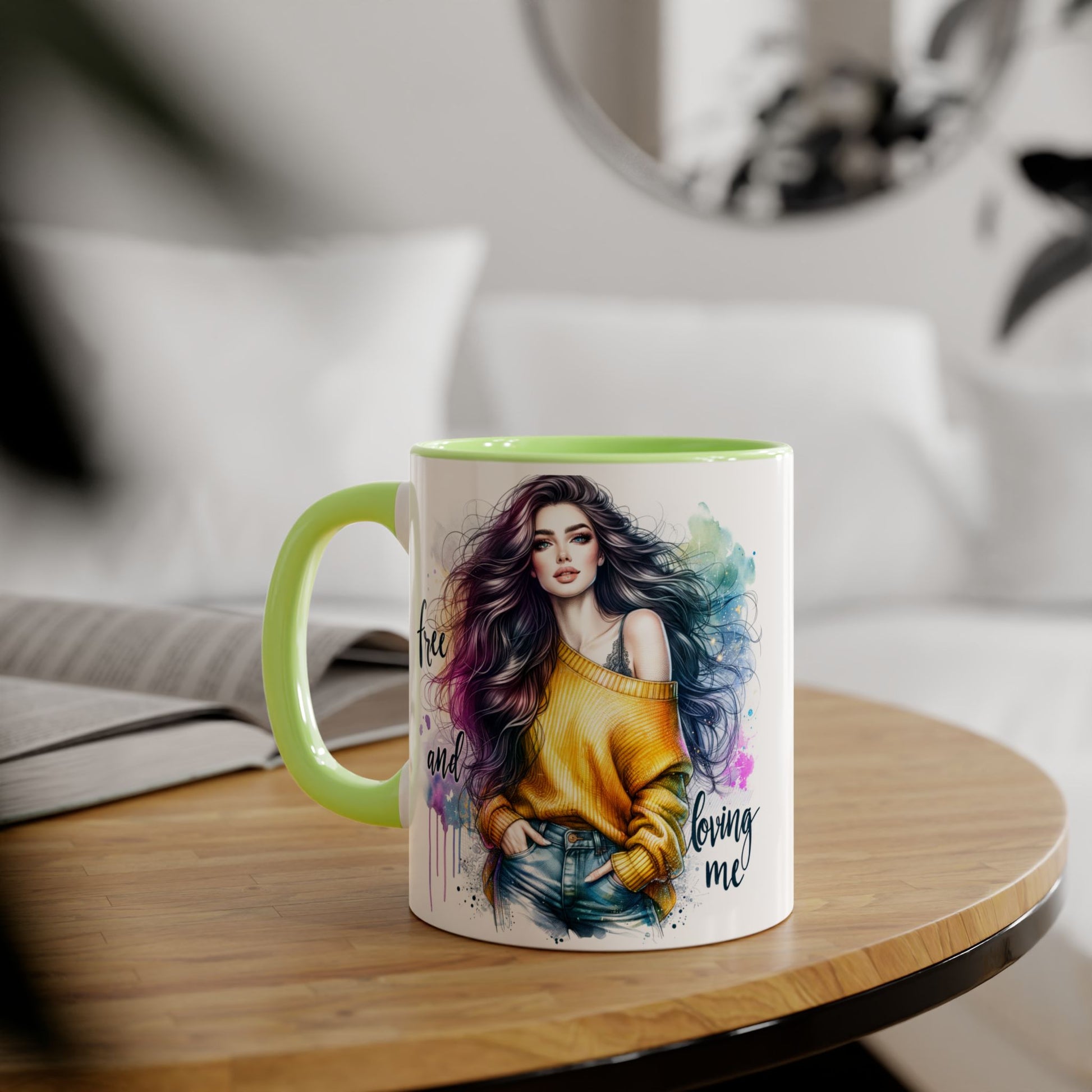 Colorful Inspirational Accent Mug, Free and Loving Me Coffee Cup, Artistic Drinkware Gift for Her, Vibrant Daily Motivation, Birthday [...]