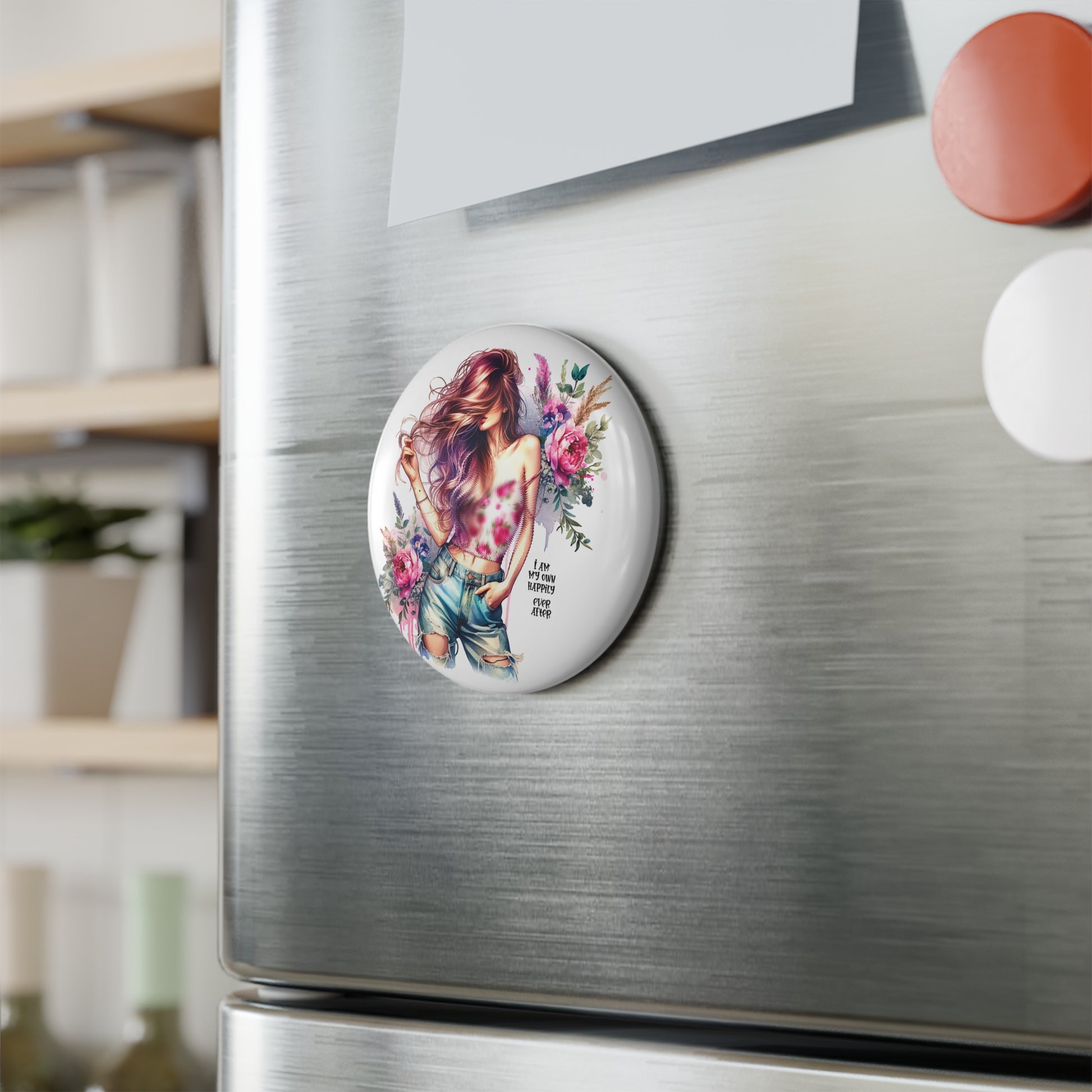 Floral Art Button Magnet - "I Am My Own Happily Ever After " - Perfect for Self-Love & Inspiration