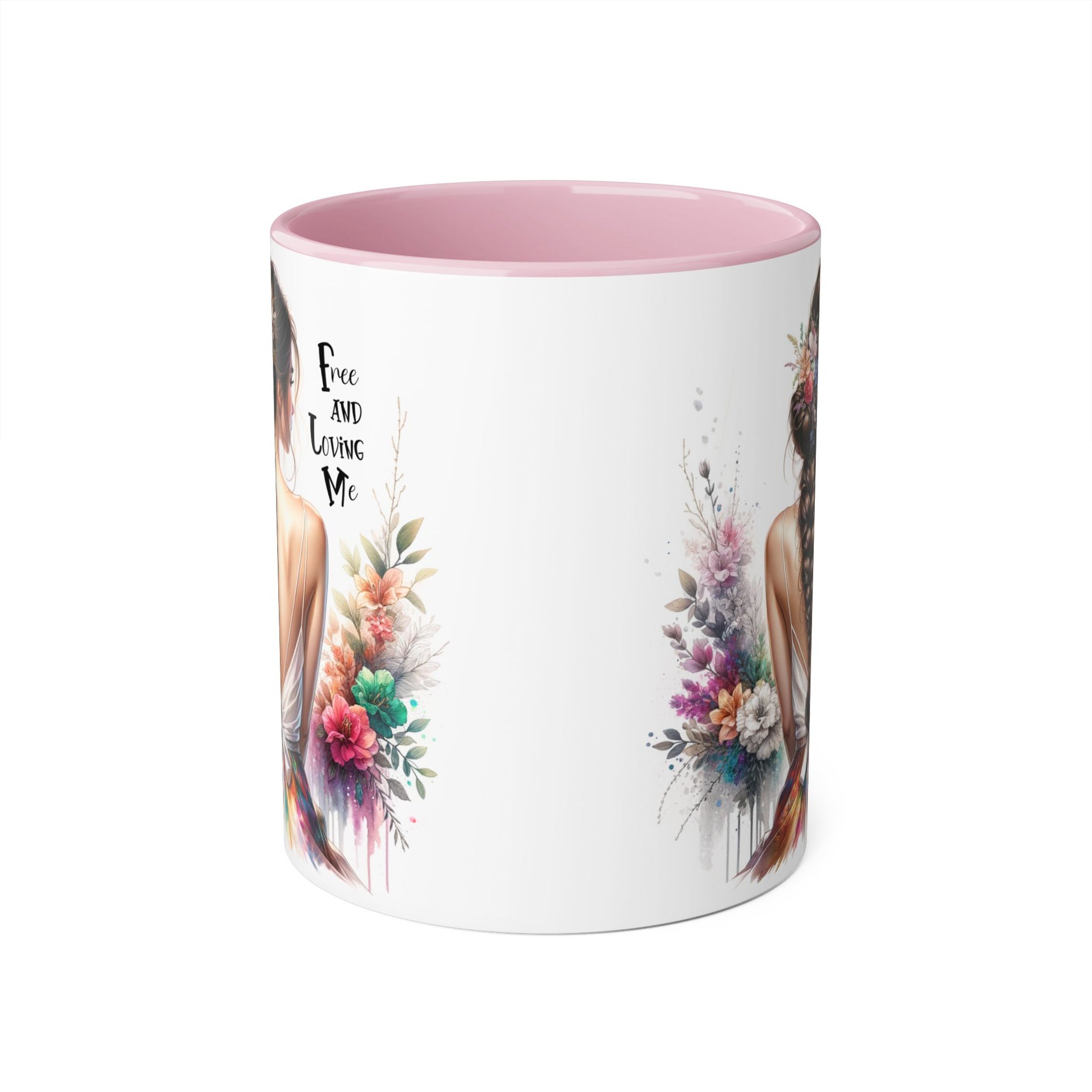 Floral Art Mug - 'Free and Loving Me', Coffee Cup, Gift for Her, Home Decor, Personalized Drinkware, Inspirational Mugs, Floral Design