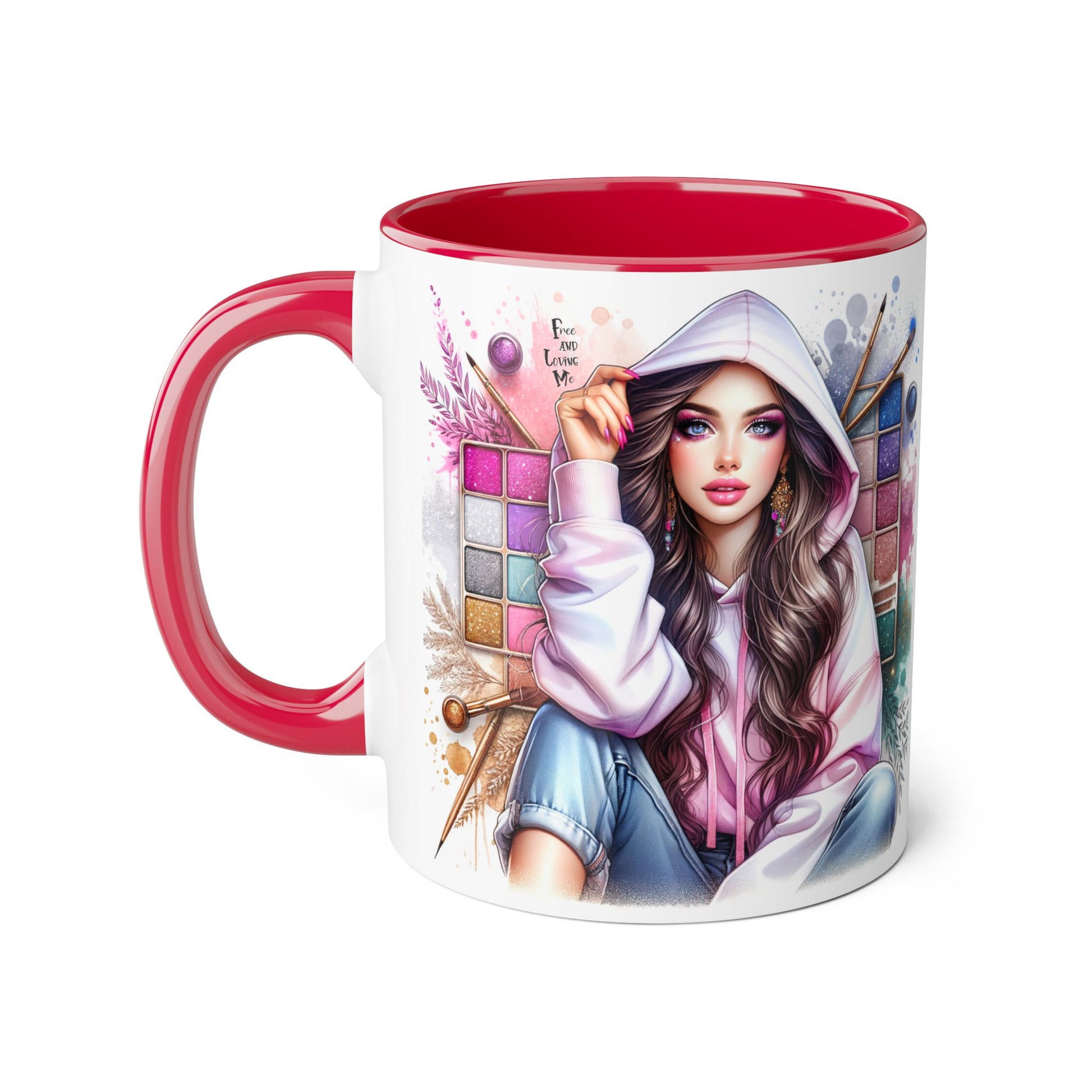 Free and Loving Me Artistic Accent Mugs, Fashionista Gift, Makeup Artist Coffee Cup, Unique Artistic Mug, Stylish Beverage Container, Creative Decor