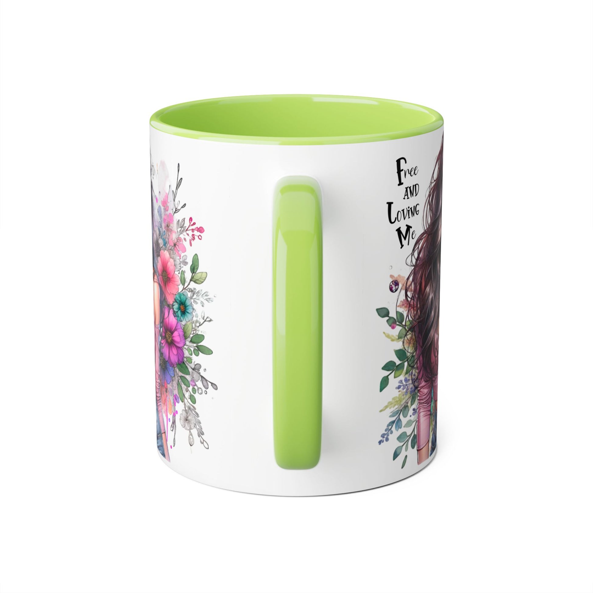 Free and Loving Me Chic Art Mug, Emotional Inspiration, Gift For Friends, Coffee Lover, Floral Design, Daily Motivation
